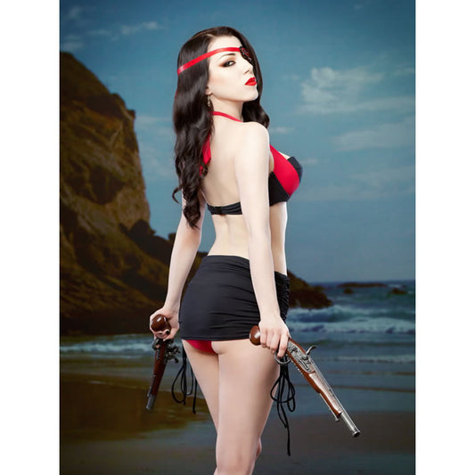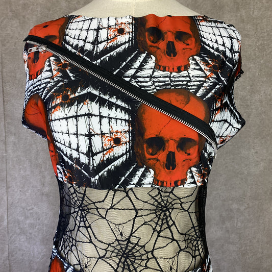 RED SKULLS/BLACK SPIDER WEB LACE STRIP DRESS