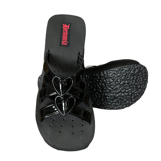 【DEMONIA】ハートバックルエナメルストラップ厚底サンダル-US7(23.5-24cm)