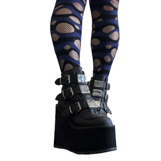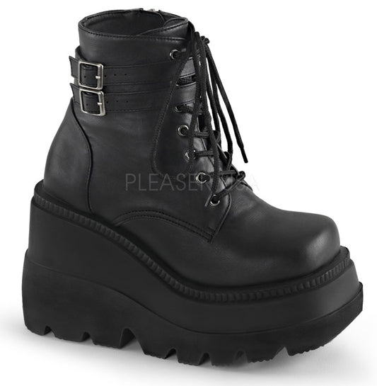 【DEMONIA】ウェッジソール・ダブルストラップレースアップ厚底ブーツ