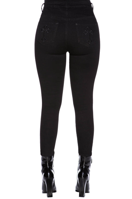 【KILL STAR】CROSSROAD JEANS*クロスパッチジーンズ-SIZE:L