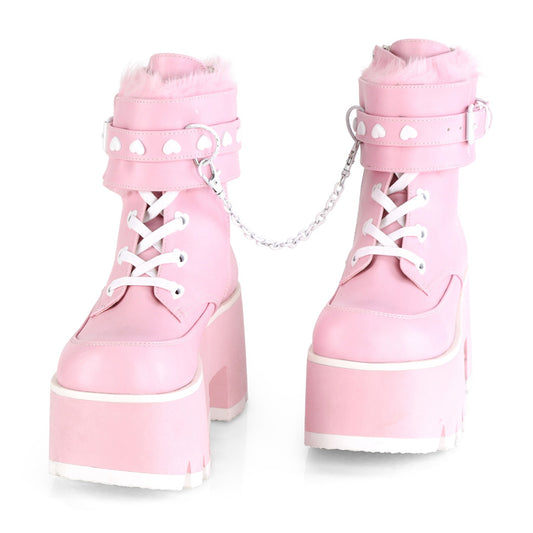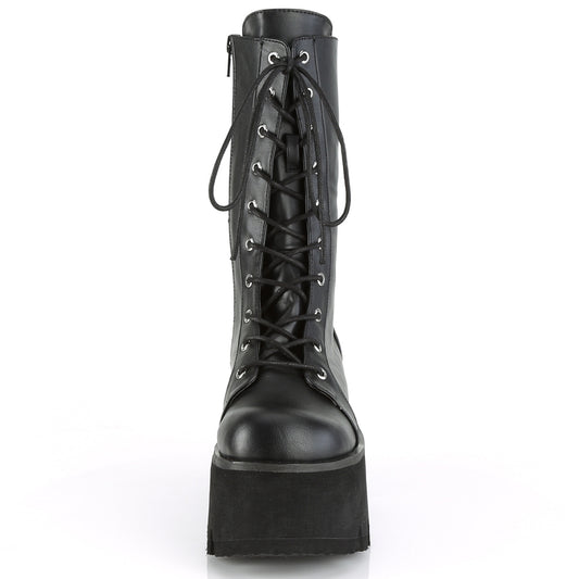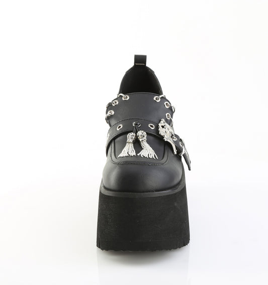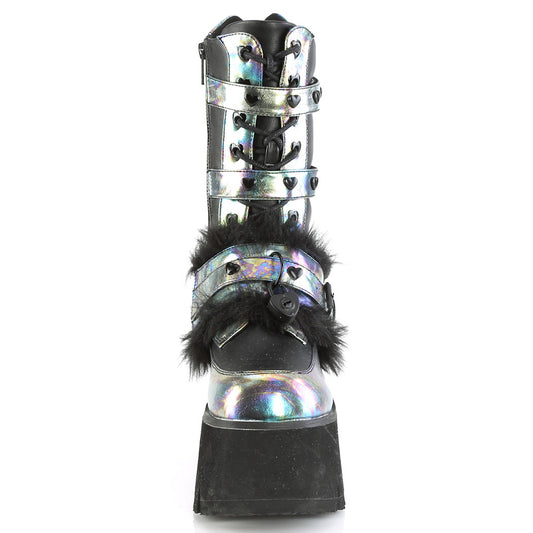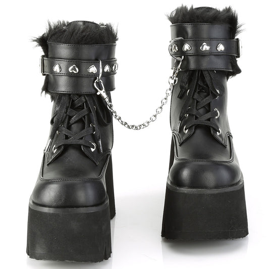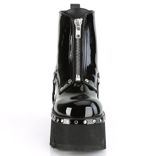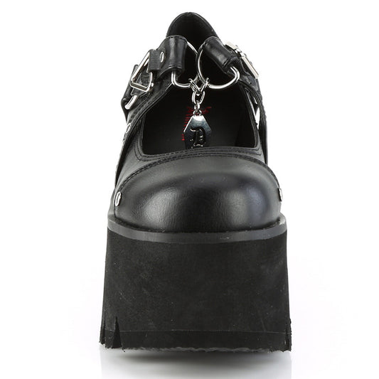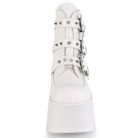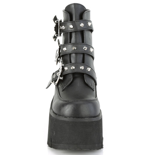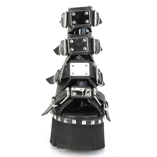 【DEMONIA】3段メタルバックル厚底アンクルブーツ-US7(23.5-24cm)