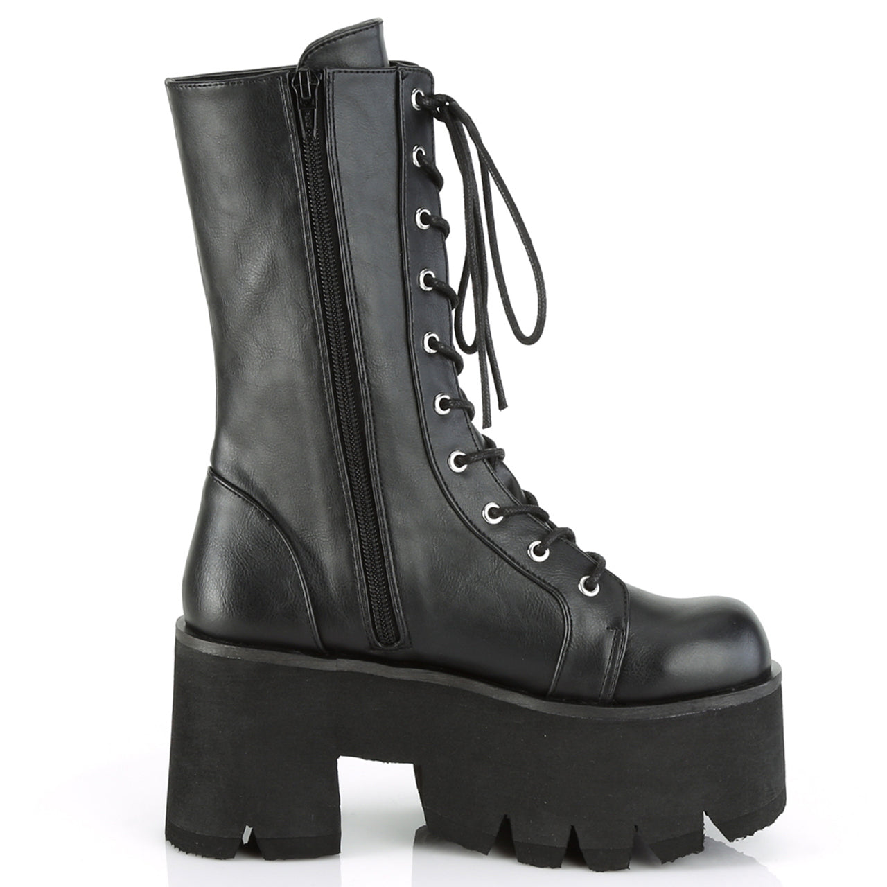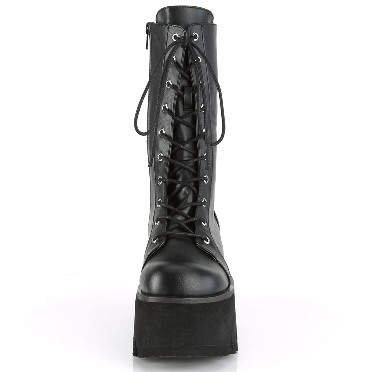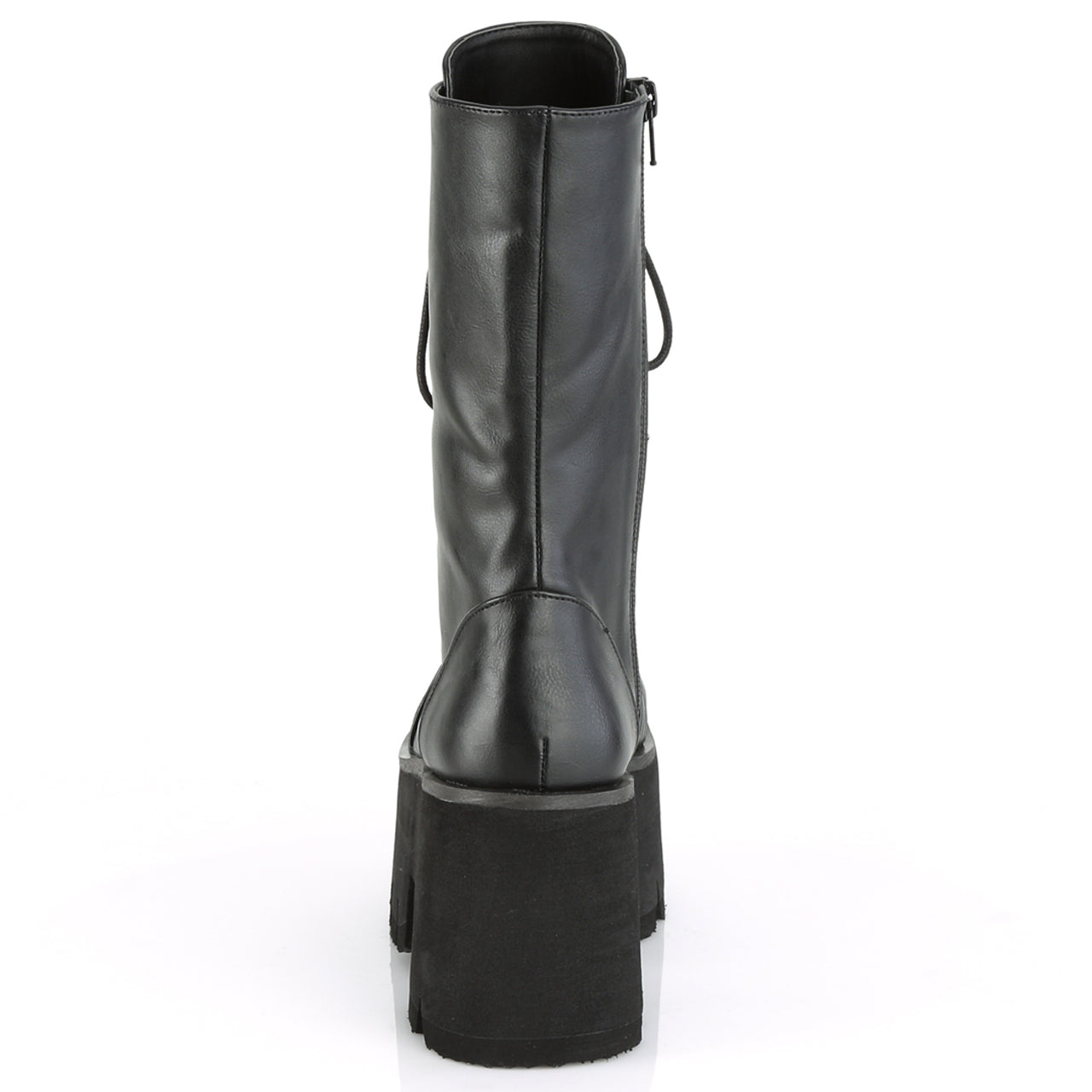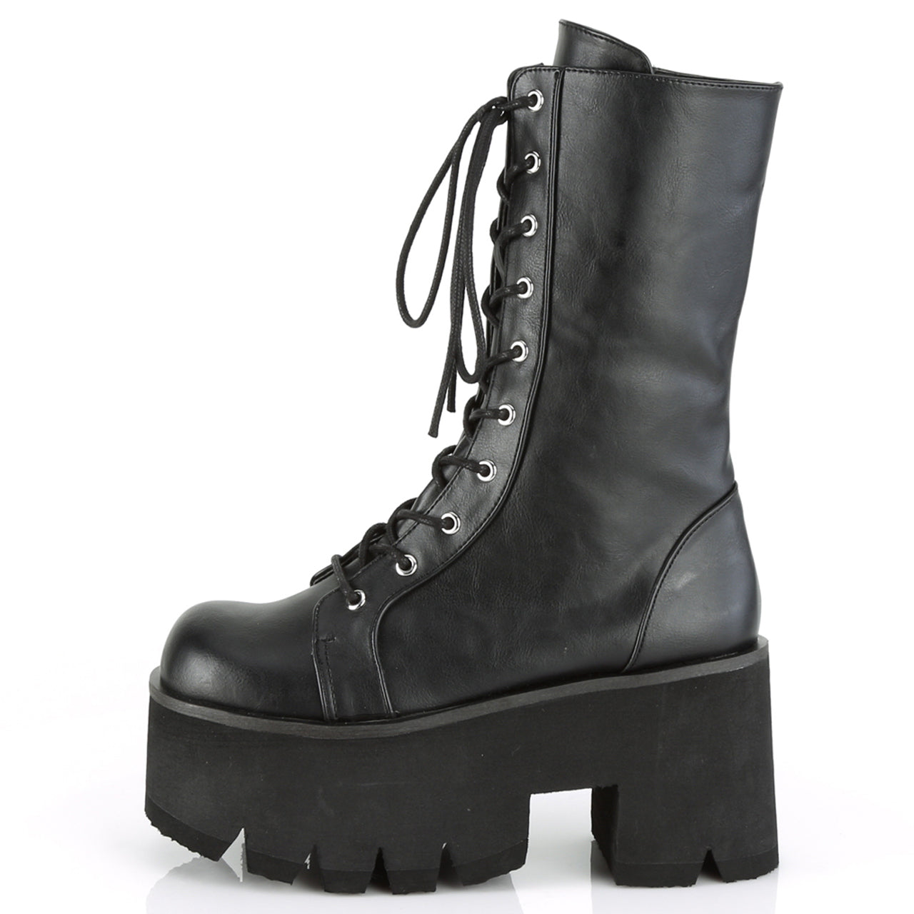 Platform lace-up mid-calf boots Side zip closure Vegan leather