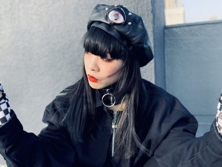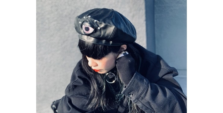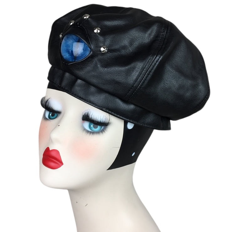 EYE PANEL LEATHER BERET-CAT/BLUE