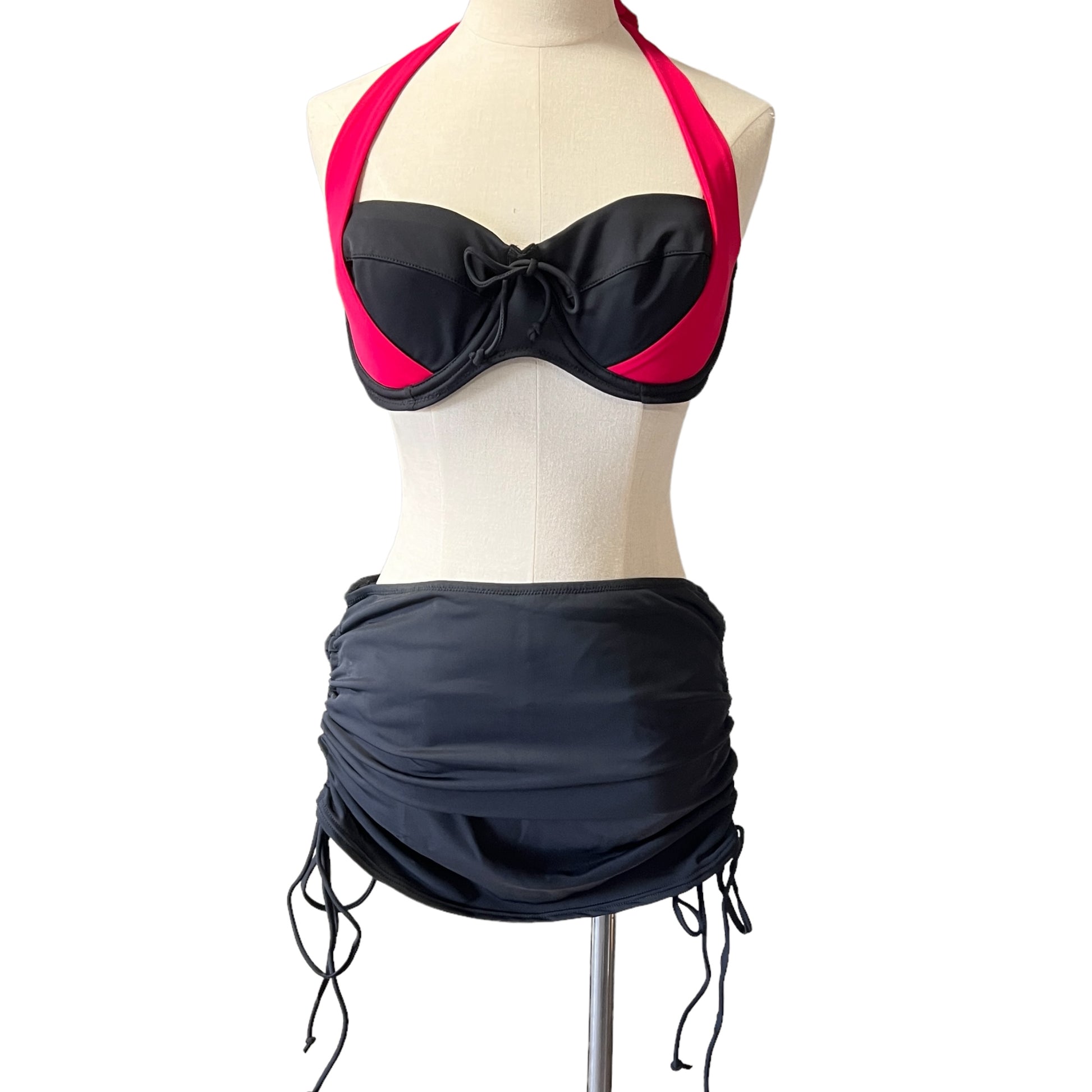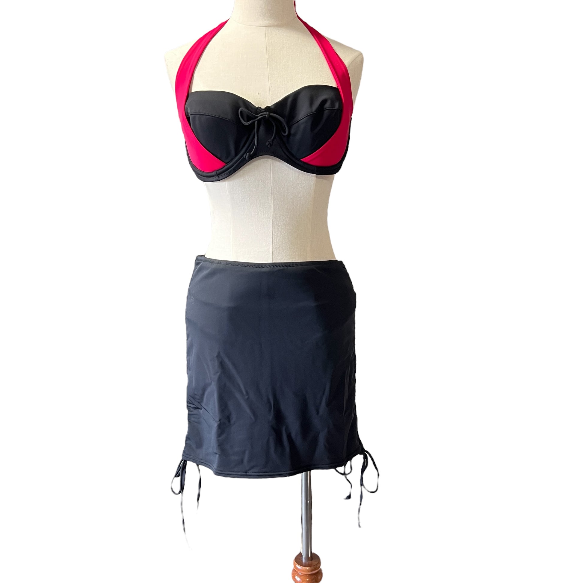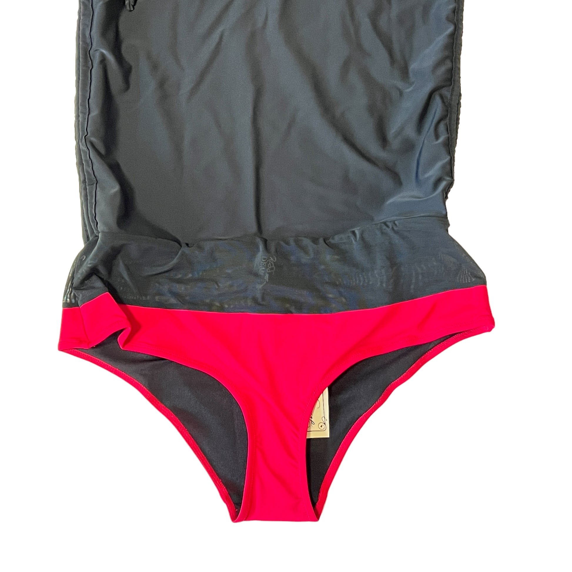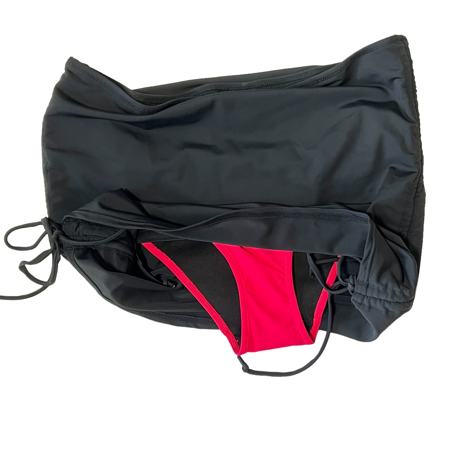Power mesh built-in around the stomach of the skirt bottom where the red inner shines.