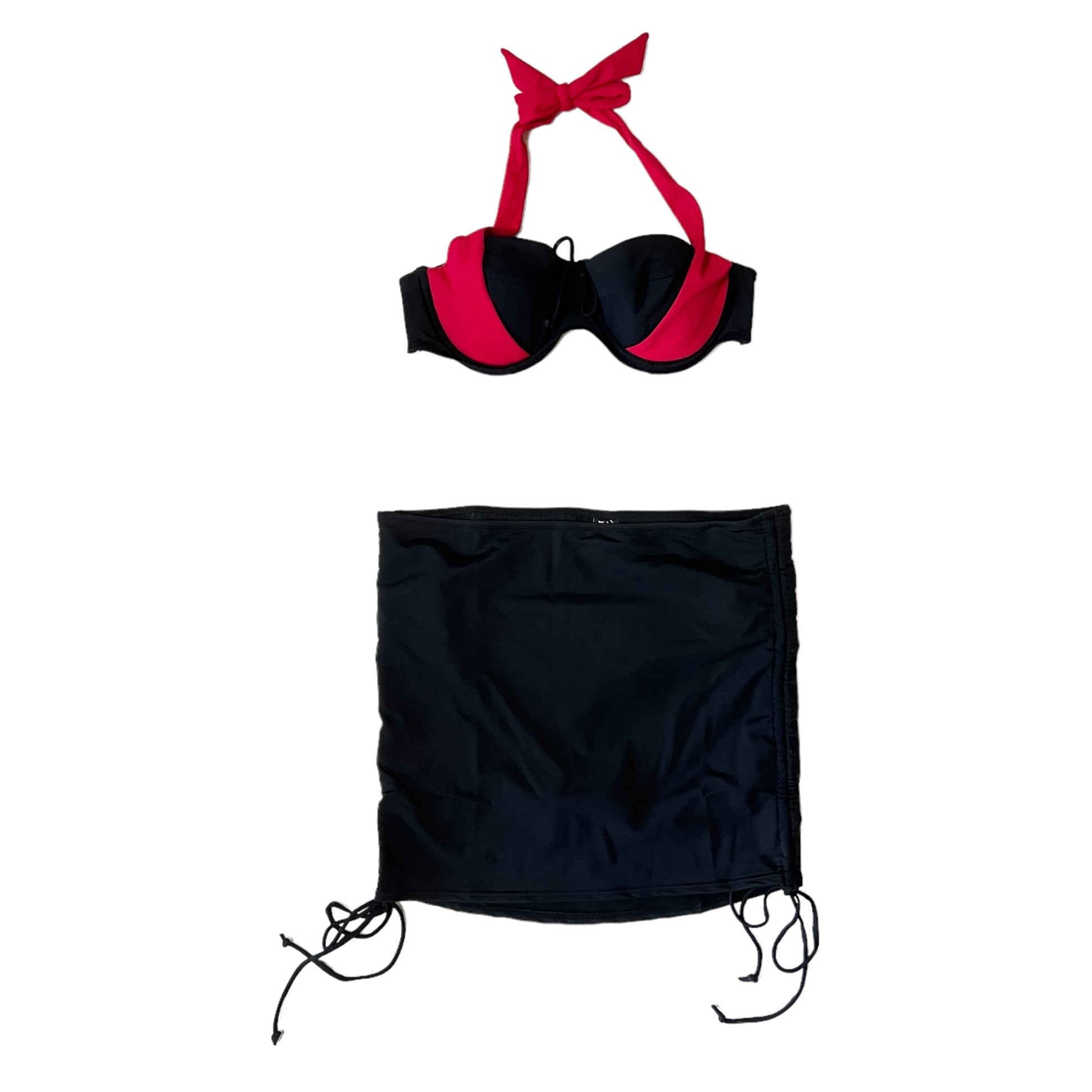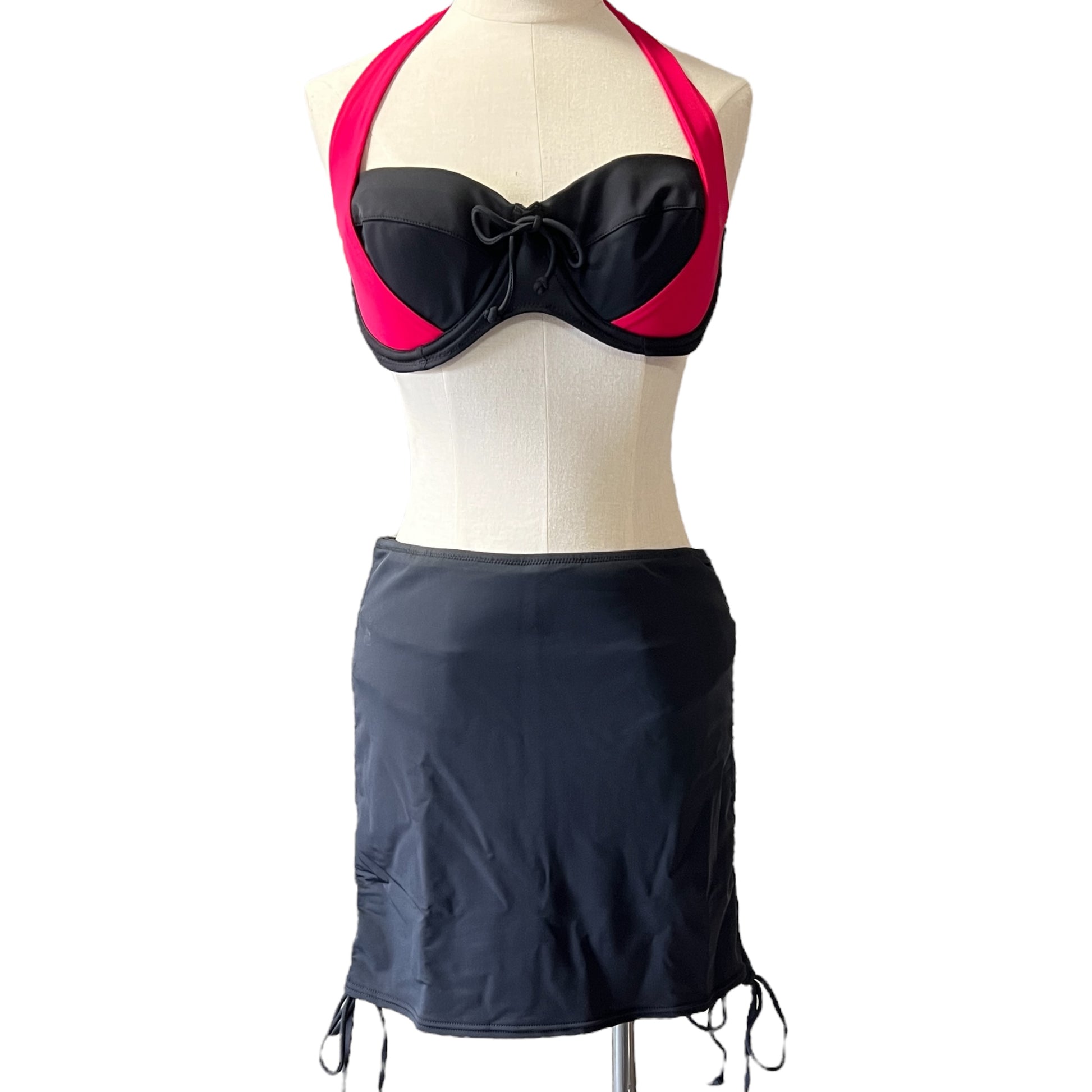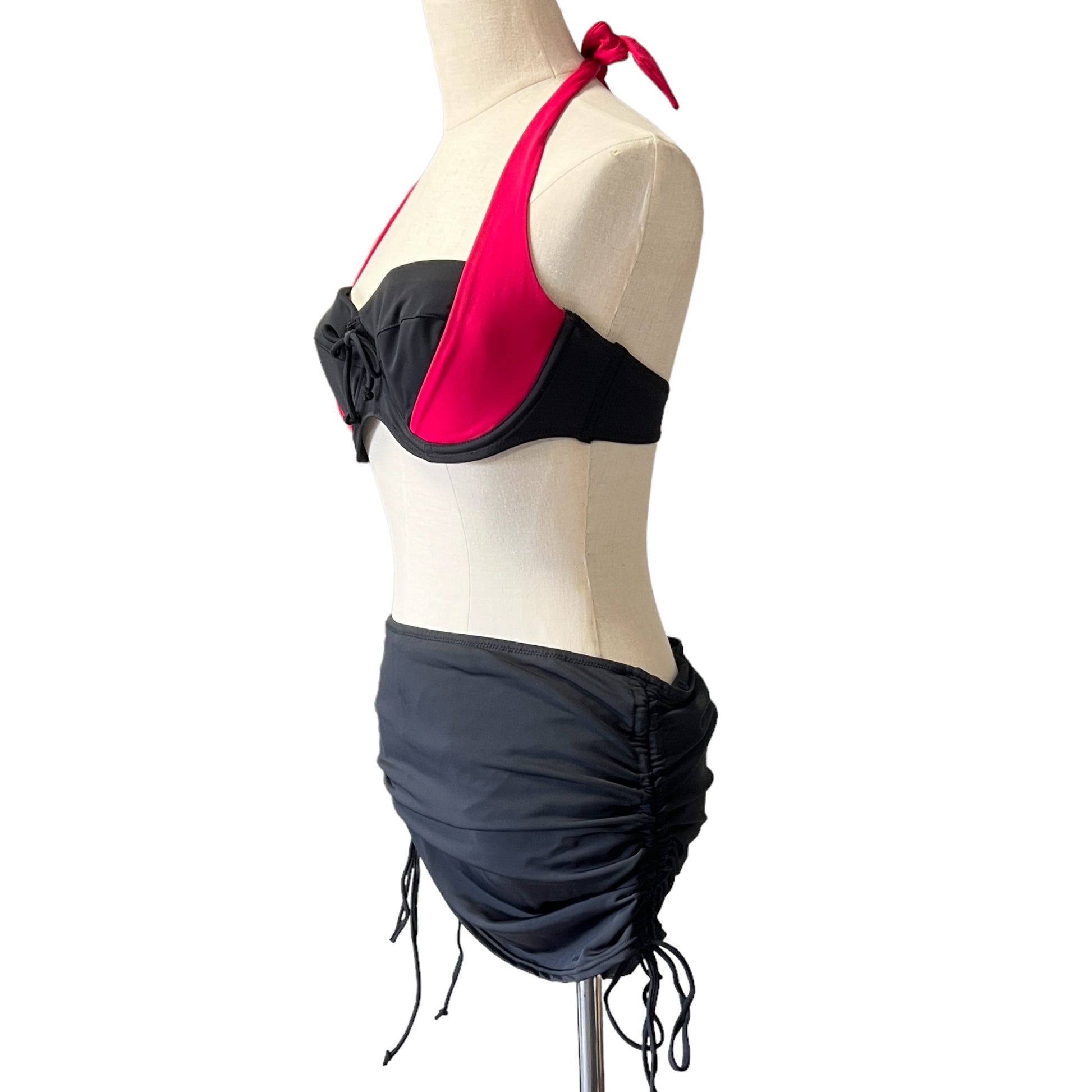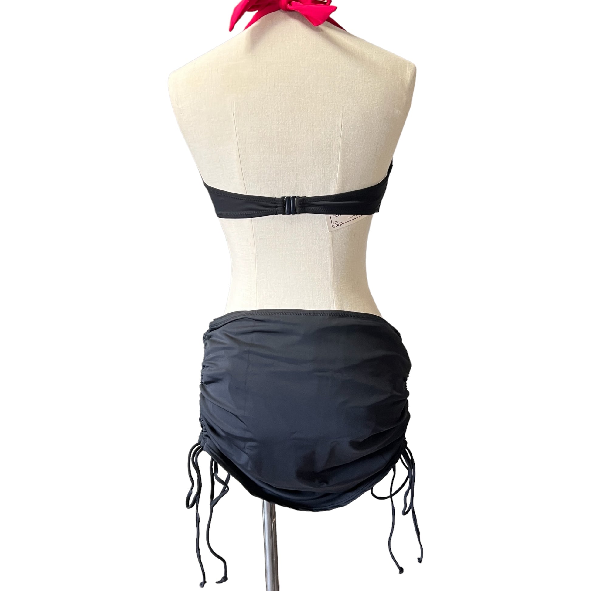 Power mesh built-in around the stomach of the skirt bottom where the red inner shines.
