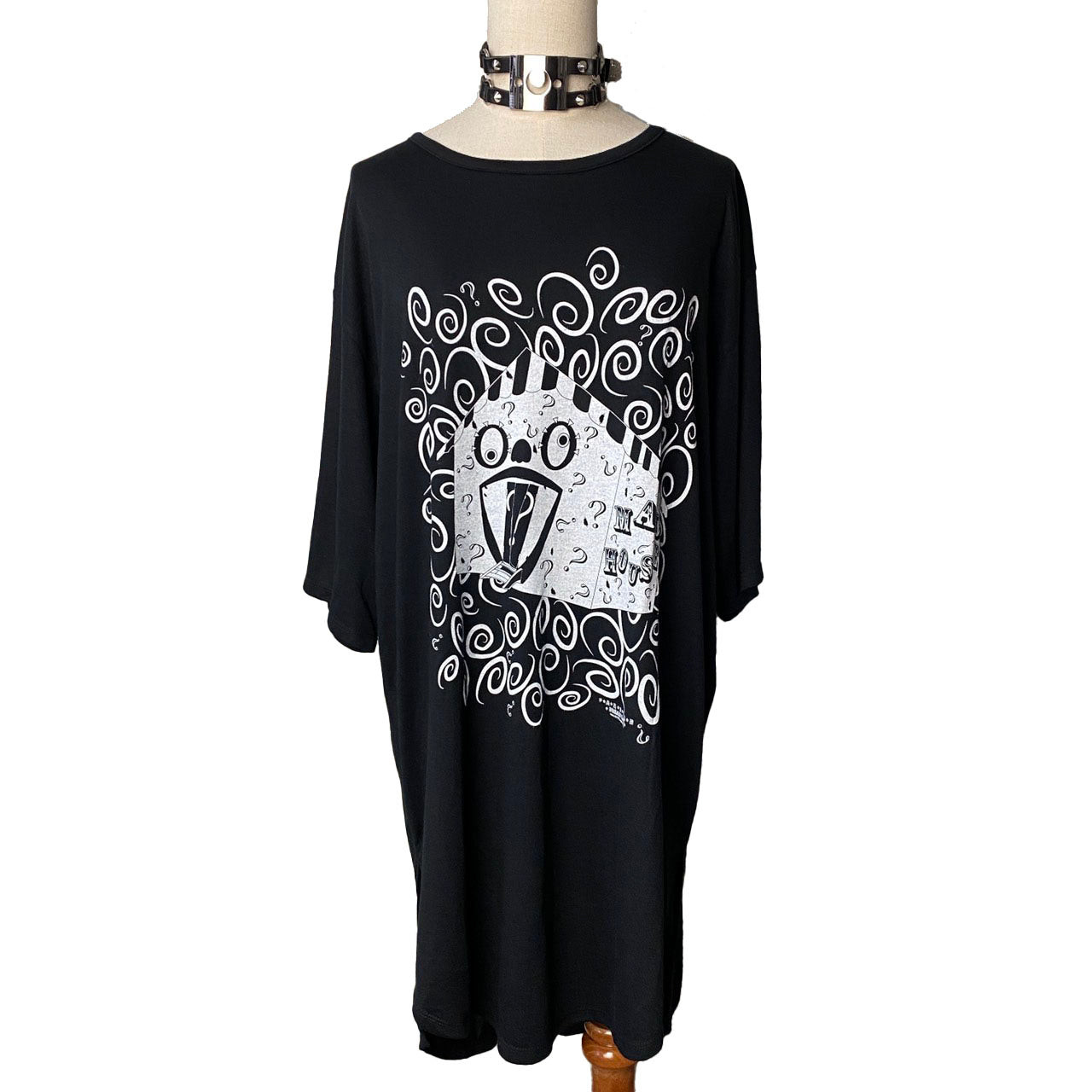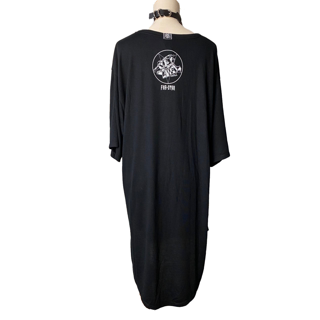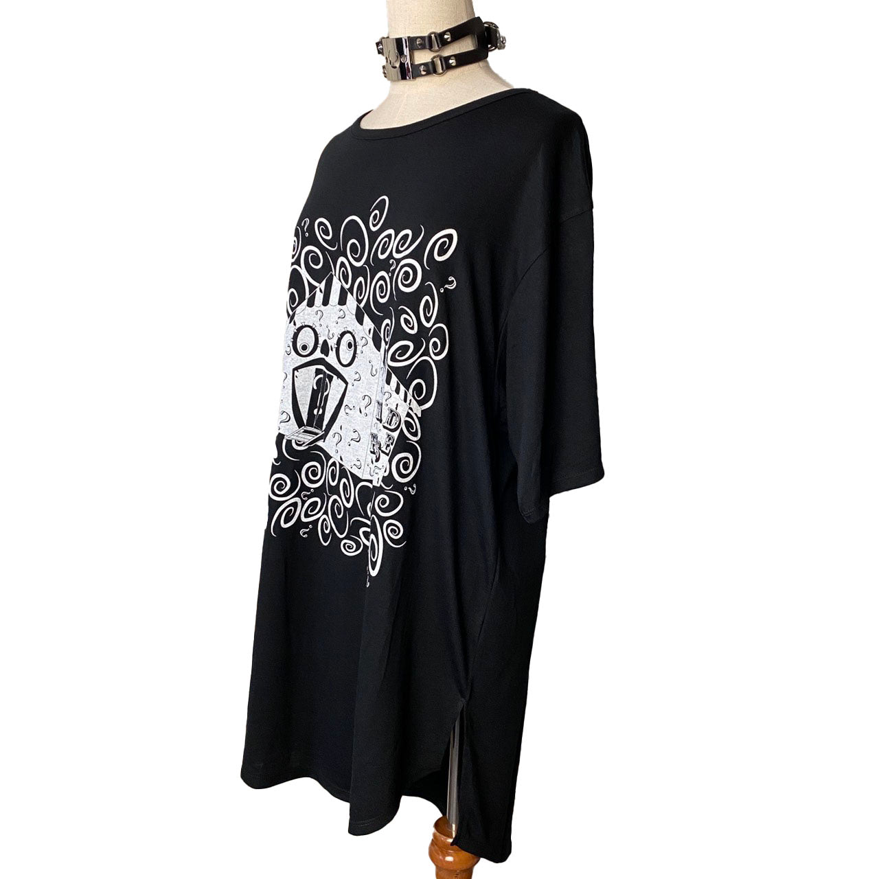 A fishtail type oversized T-shirt with a longer length in the back. The side hem slits give it a unique feeling of looseness.