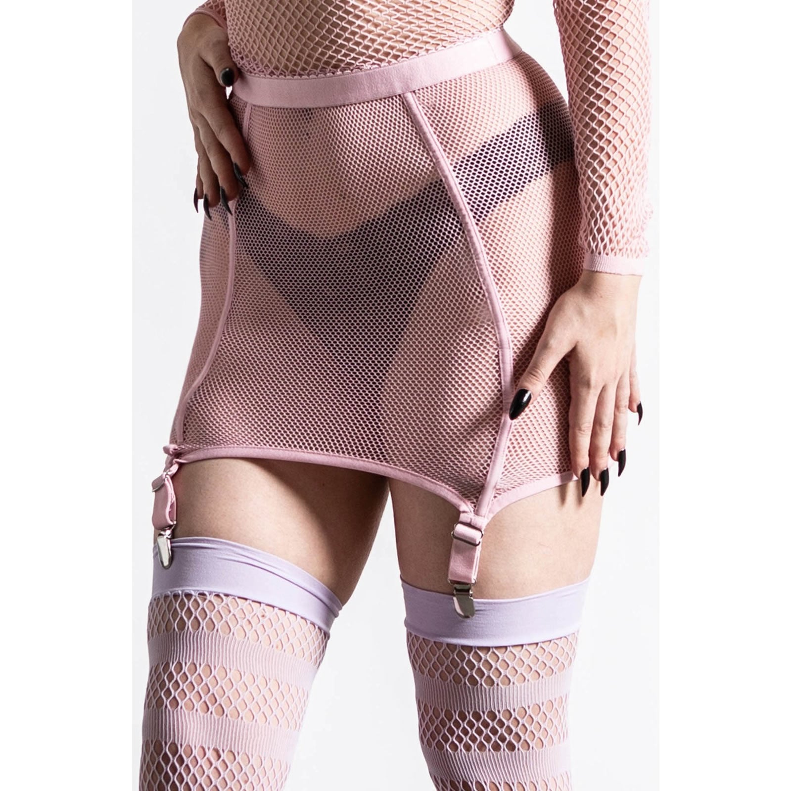 【KILL STAR】HEARTBEATS FISHNET SKIRT [PASTEL PINK]