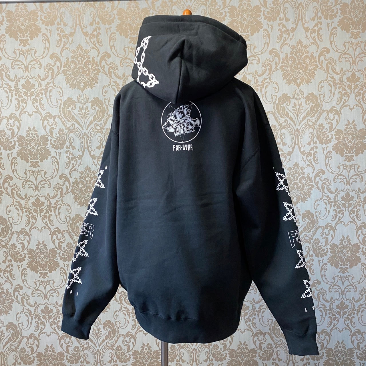 A symbol mark with a farstar shop map motif is placed under the back neck.