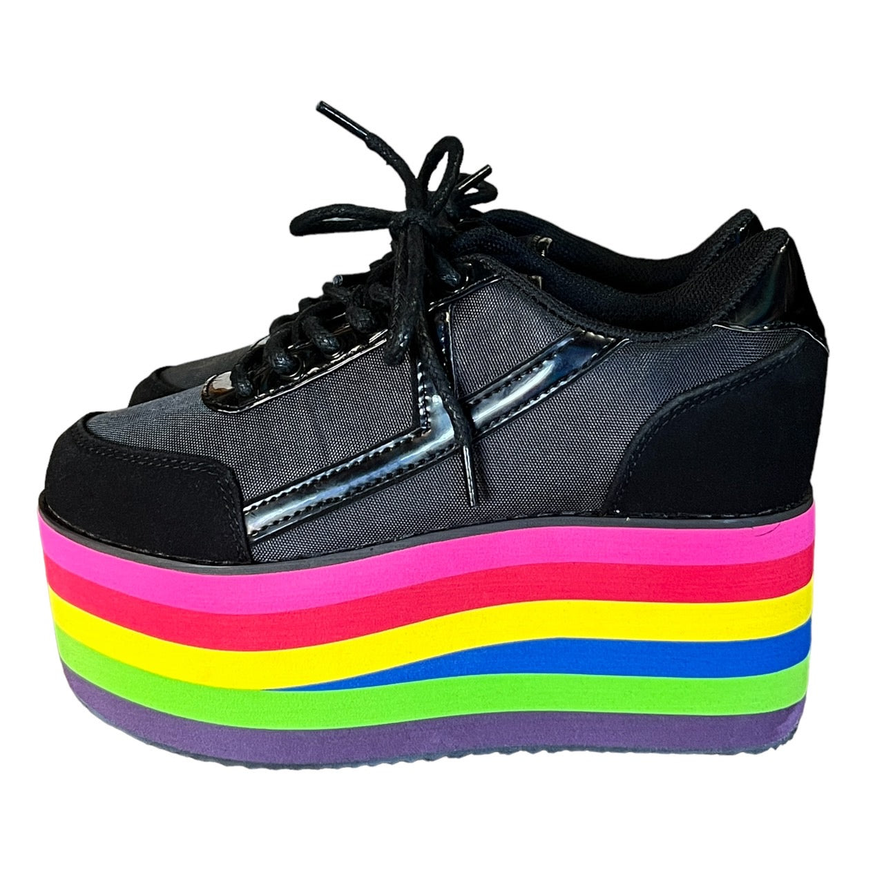 レインボーソールが可愛いハイプラットフォームスニーカー。