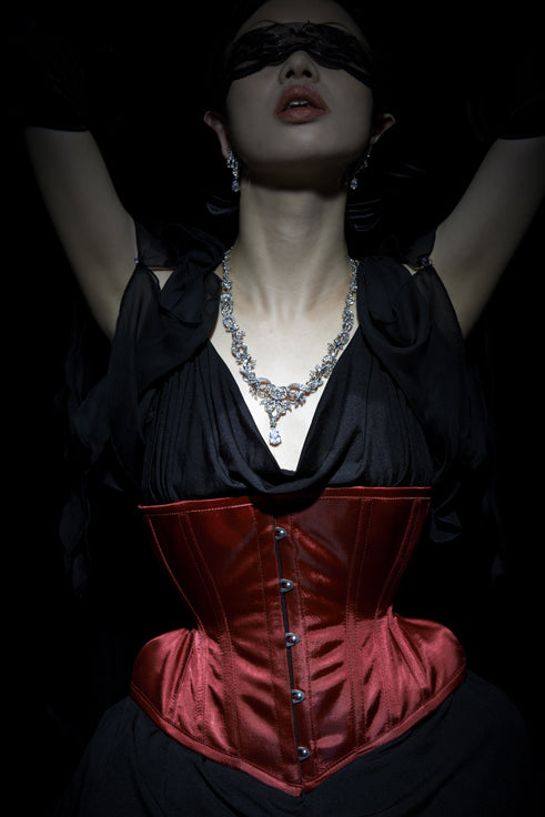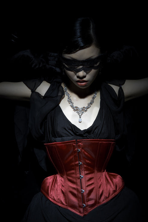 三段カーブをより極限まで急傾斜にした砂時計型アンダーバストコルセットの上級モデルです。