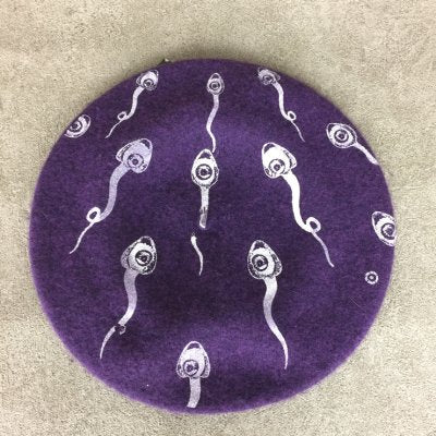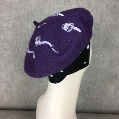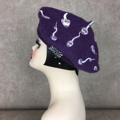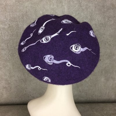 人間の目のような核を持つスペルマがプリントされたベレー帽。