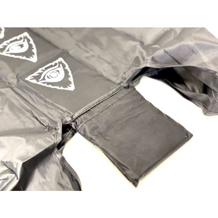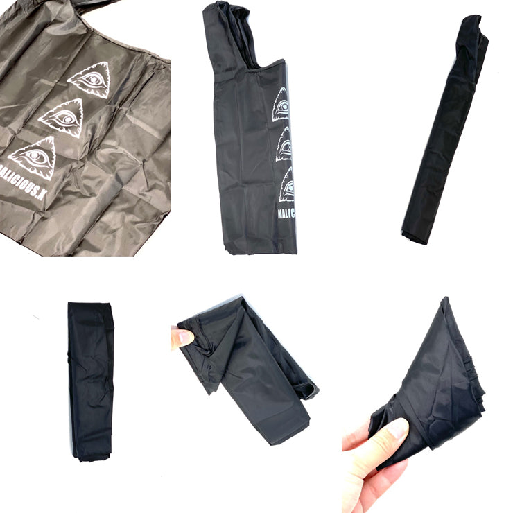 折りたたんでポーチに入れ、キーホルダーのようにメインバッグにつけておけます。