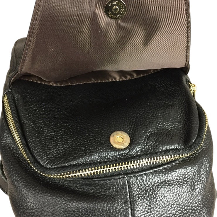 本革。バッグ本体のファスナーなど金属パーツはゴールドです。