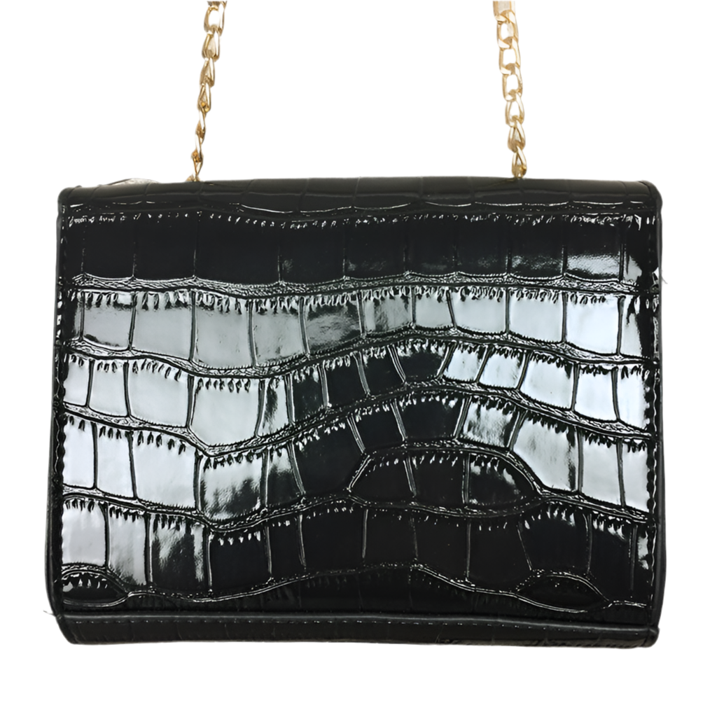 パープルの義眼とスパイキースタッズのショルダーバッグ。