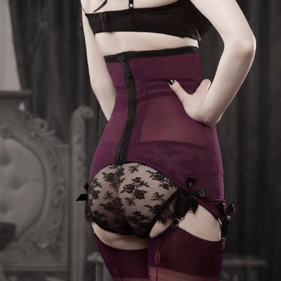 ハイウエストでくびれを作り、フロントは前からお腹を押さえるために二重生地になっています。