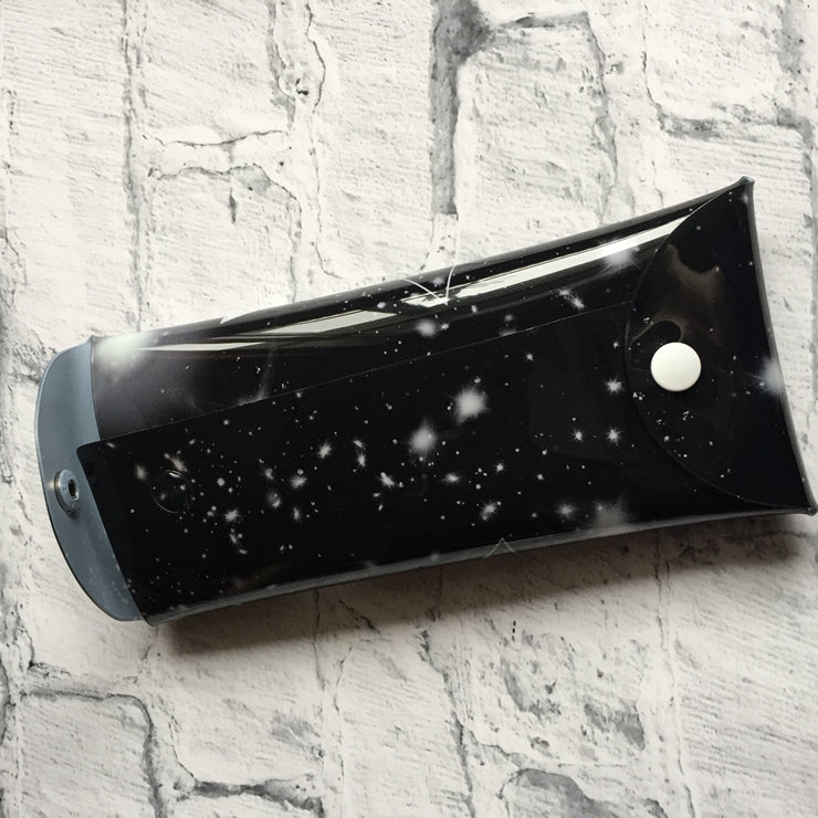 縦9cm×横19.7cmの塩ビポーチで何を入れても良いですがちょうど使い捨てマスクが入るサイズで、構造上密閉はできませんが分解展開できるので除菌シートで拭いたりもできます
