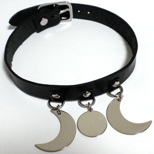 メタル・トリプルムーンのレザーチョーカー。