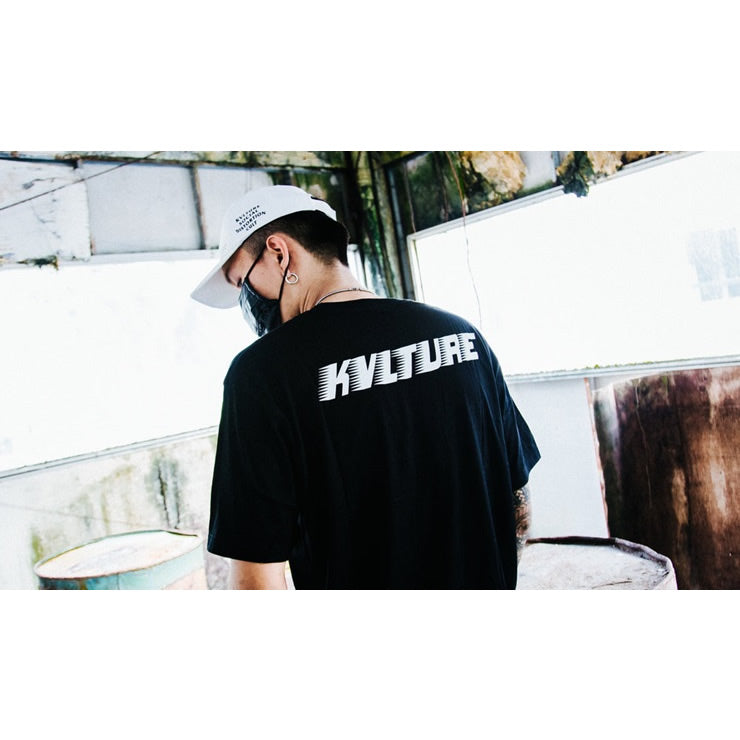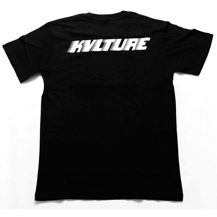 バックにスピード感のあるフォントで遊びを見せた"KVLTURE"ロゴが入ったコットンTシャツ。