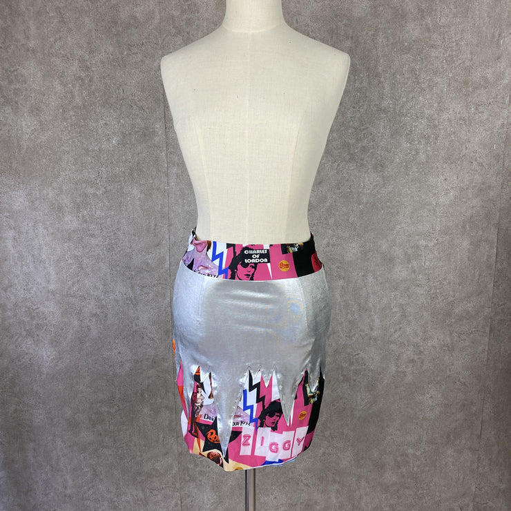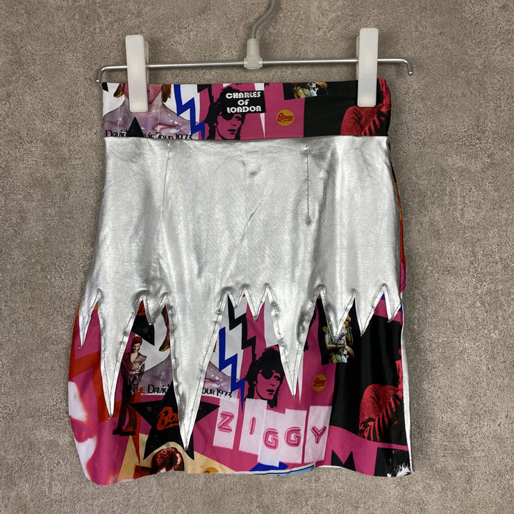 デヴィッドボウイコラージュプリントのストレッチスカート。