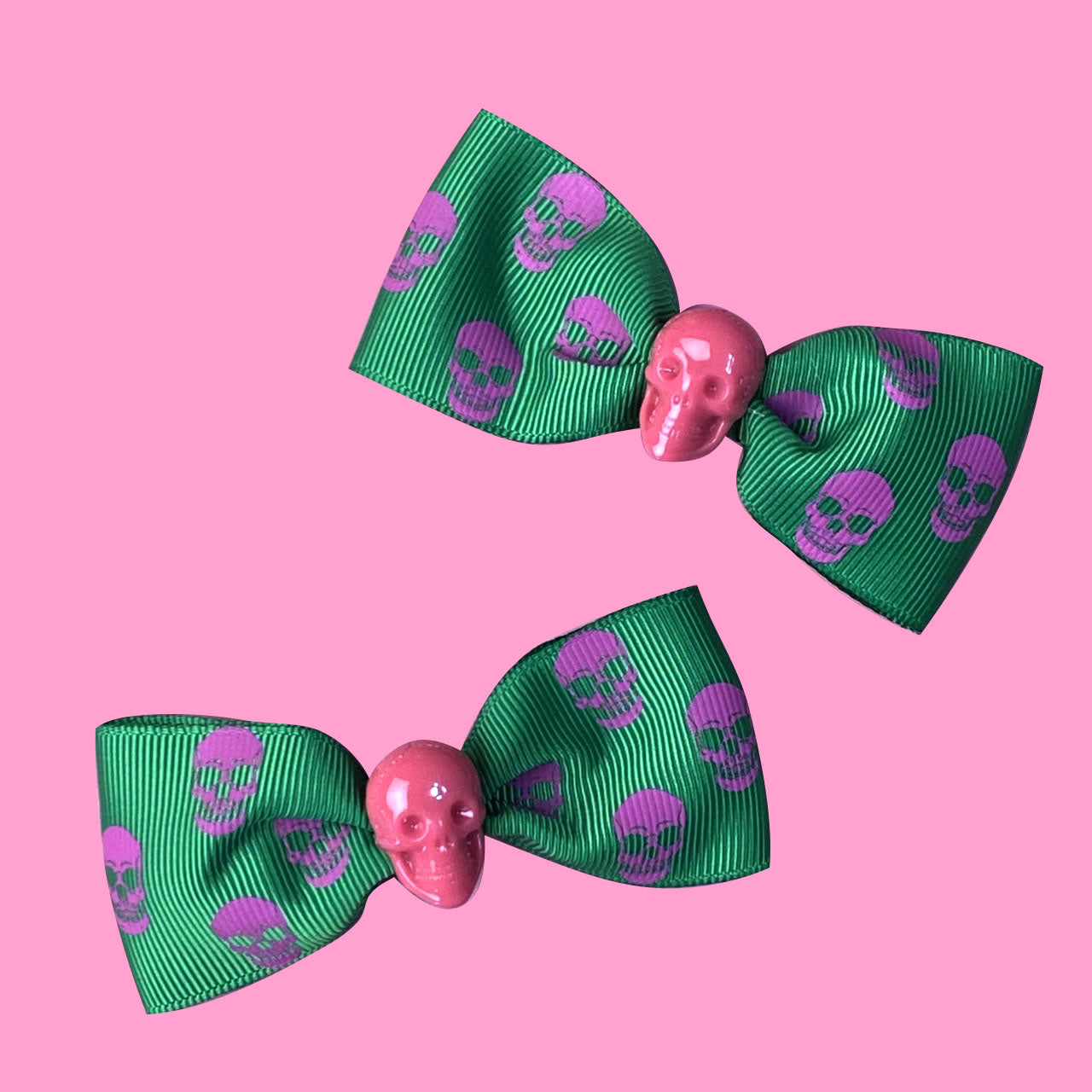 【KREEPSVILLE666】HAIR BOW PAIR GREEN SKULL