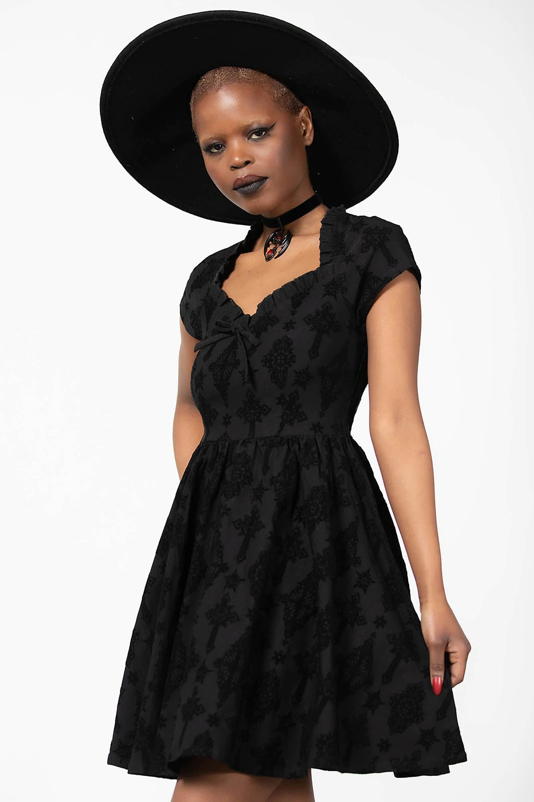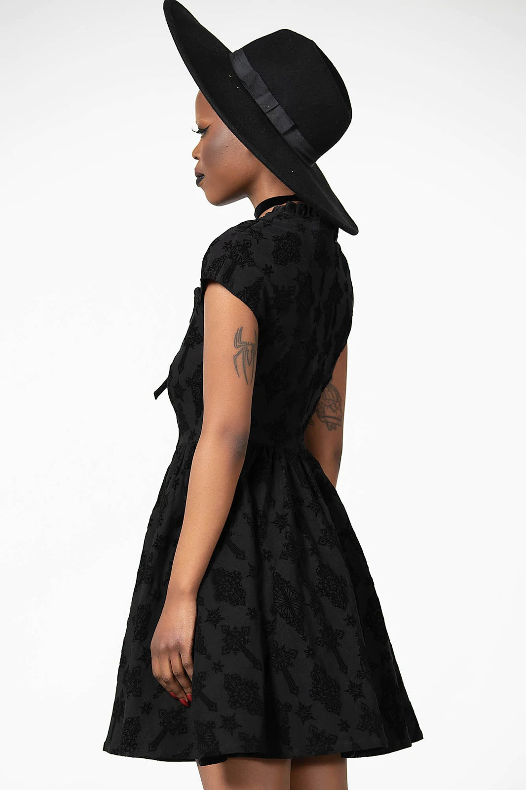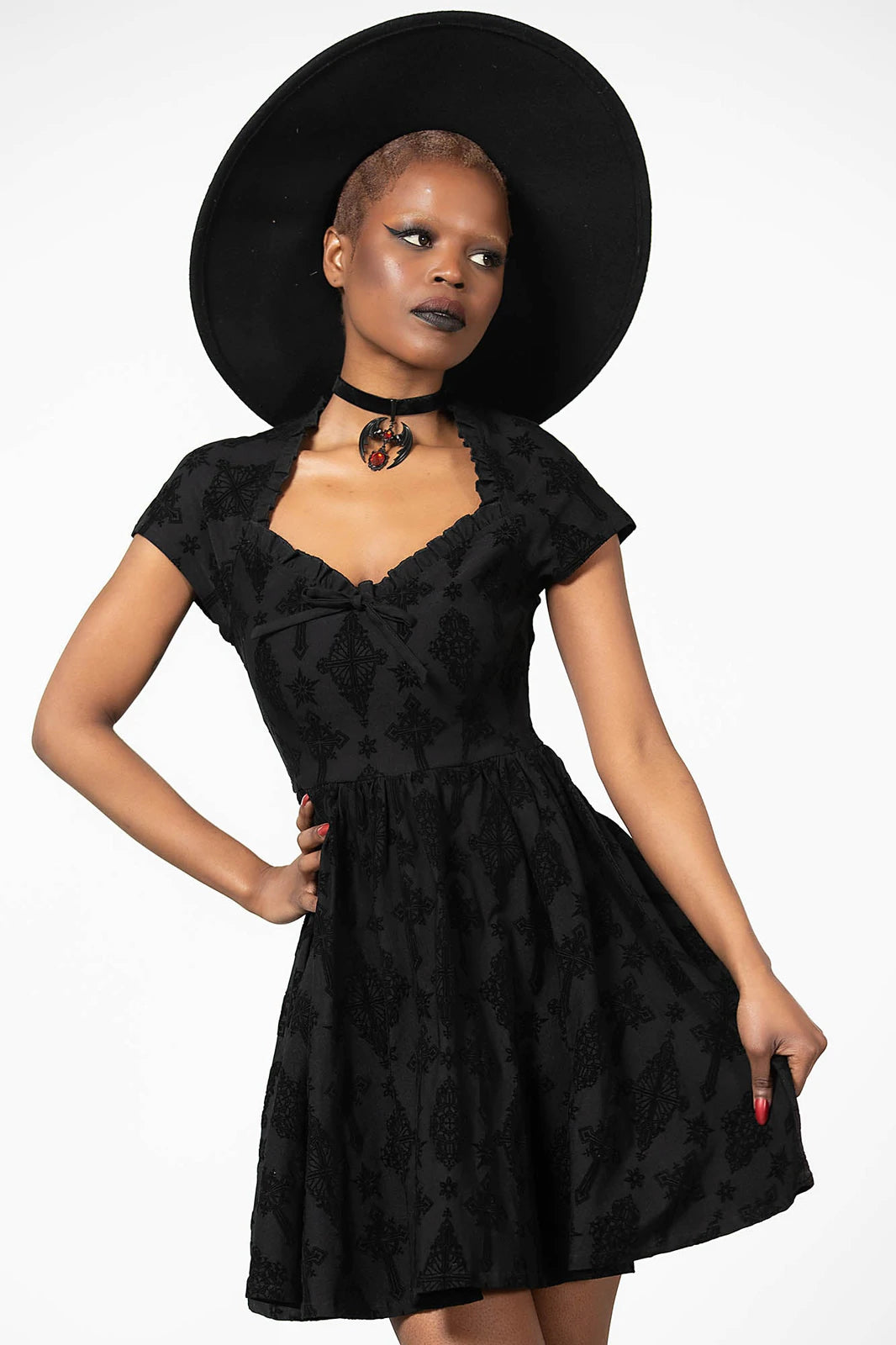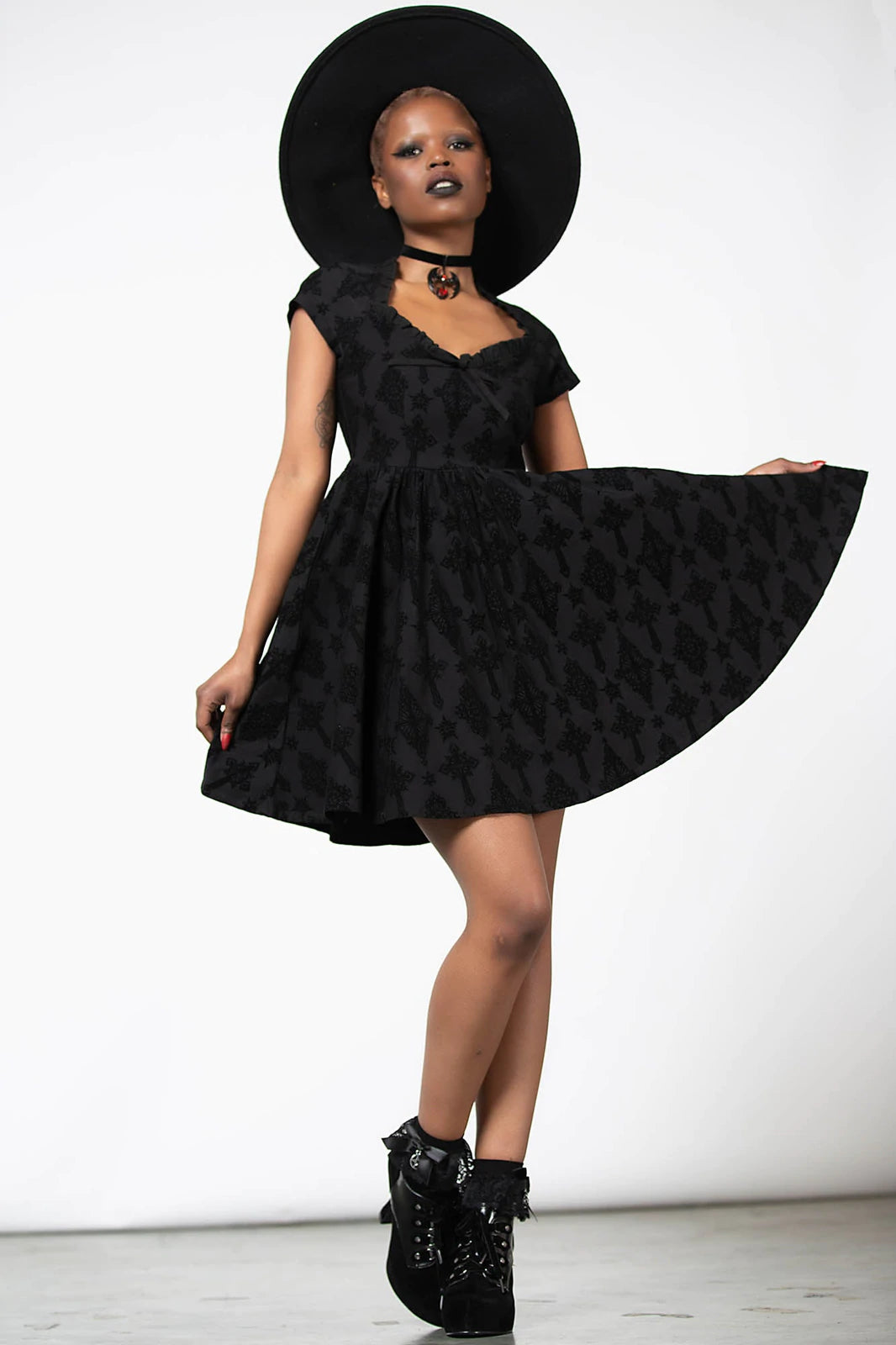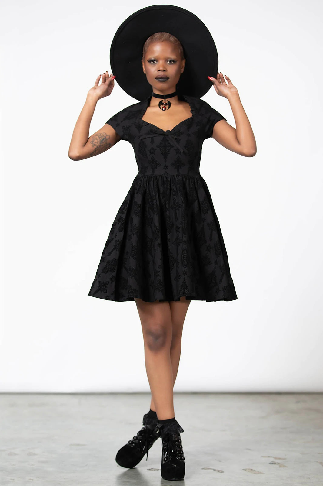 【KILL STAR】CROSSED CHLOE FLOCKED SKATER DRESS