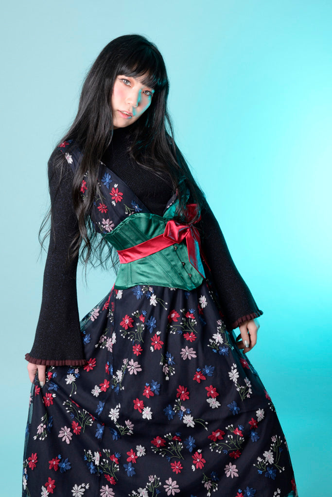 ウエストをキツく締めなくても、ウエストリボンのお陰でより細さが強調されます。