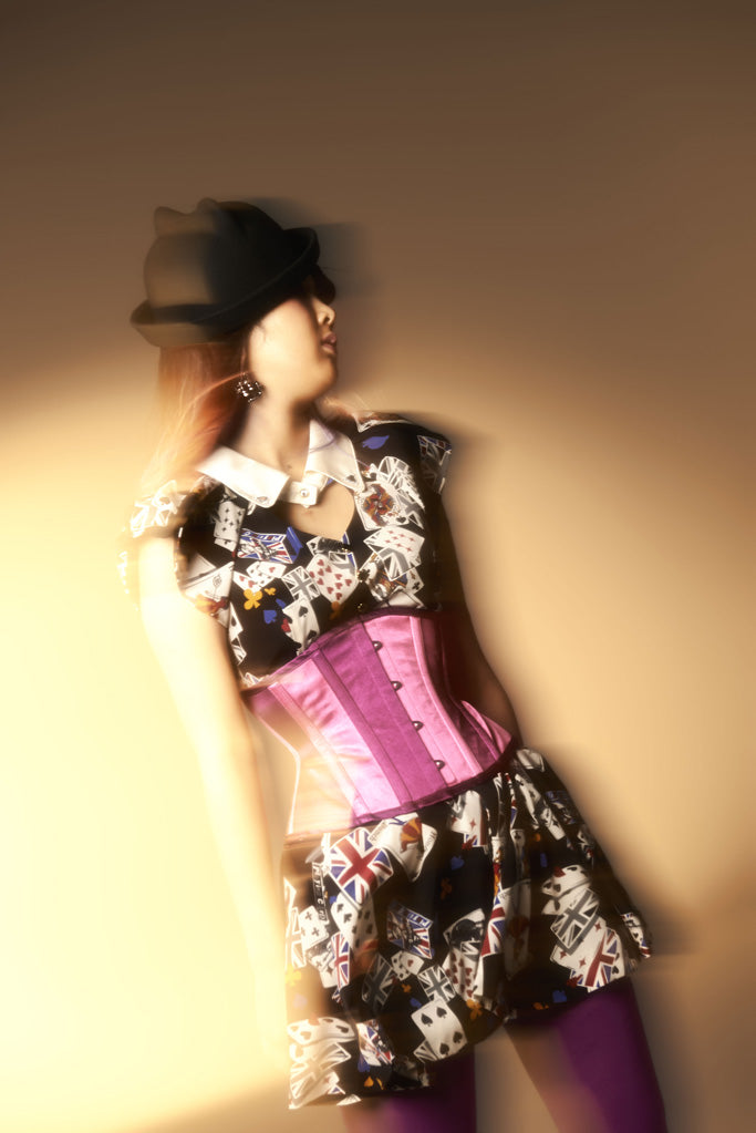 また、脇のくびれに関してですが、P.C.Wでは、都会的で洗練されたストレートなタイプの1型とディタフォンティースのコルセットに代表される様な、三段カーブを特徴とした2型がありますが、今回は、その中間を取り、カーブが付きながらもスタイリッシュなシルエットに仕上げています。