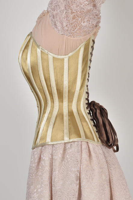 1890年頃のヴィクトリアンスタイルは7パネル構造のコルセットが数多く見られる傾向にありますが、それを一歩進める21世紀のコルセットとして片身8パネル構造のコルセットが徐々に世界標準として広がりを見せております。