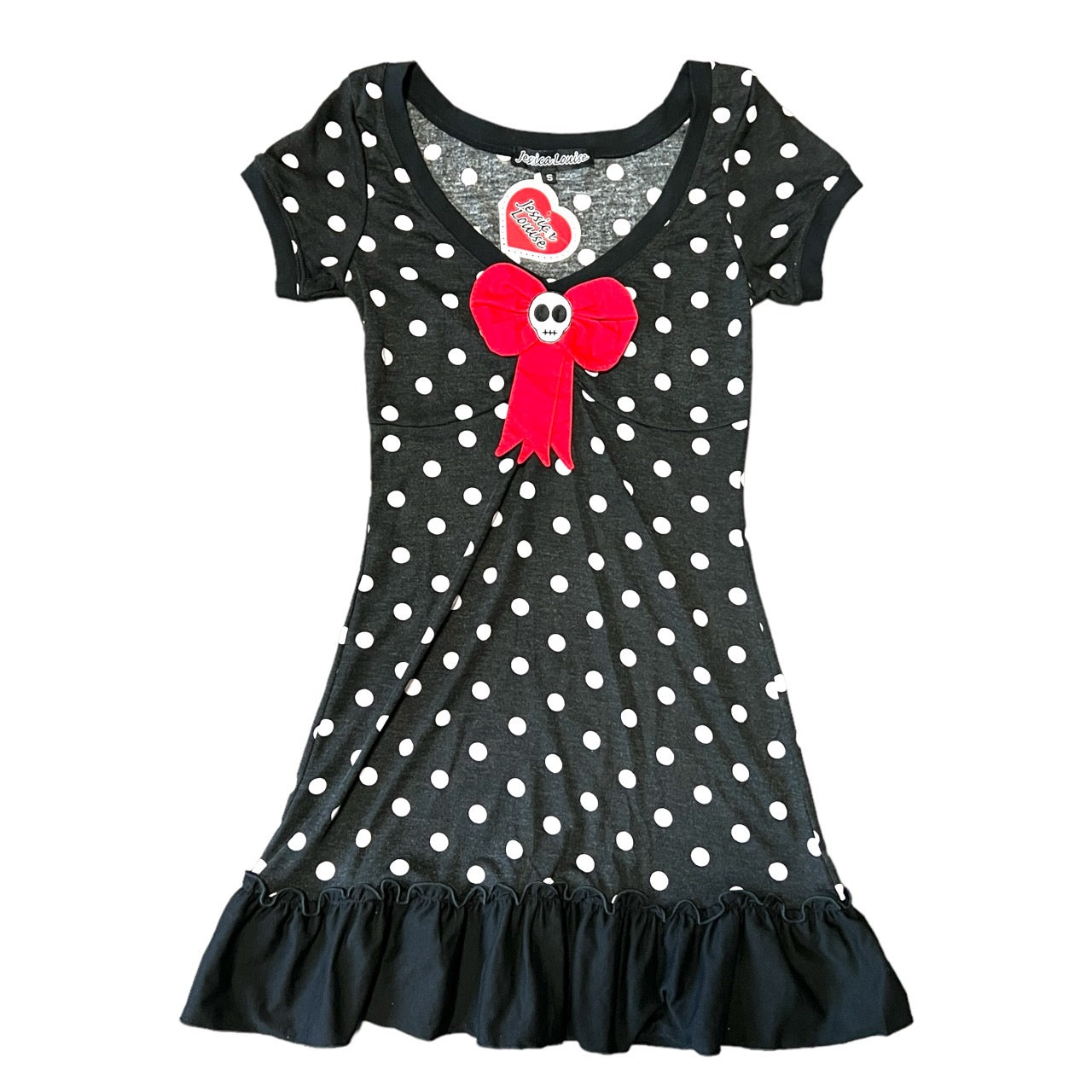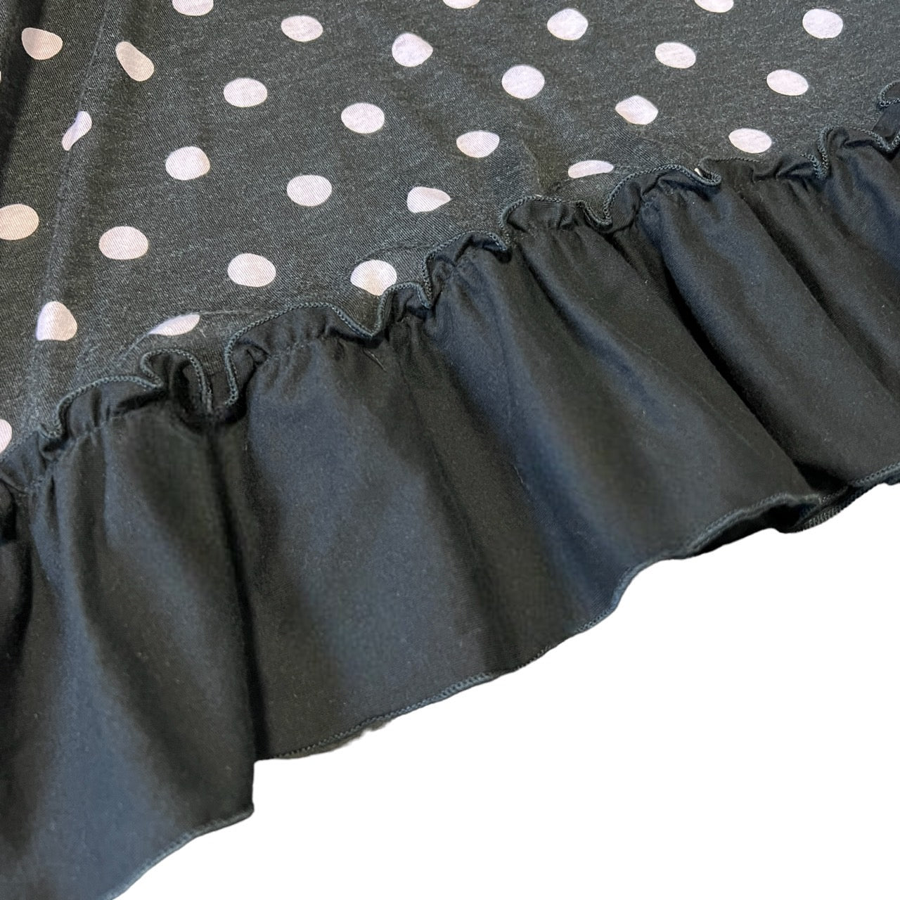 チャコールカラーにピンクがかったニュアンスのあるドット柄の生地。