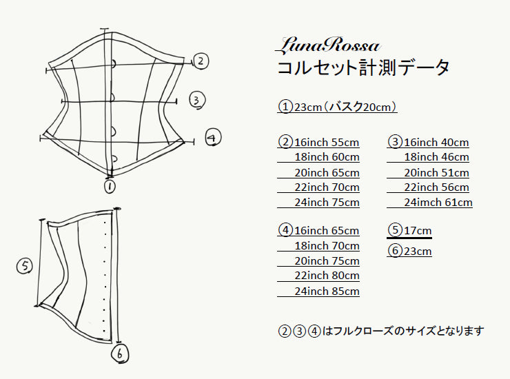 タイトレーシングには向きませんので、後ろの開き具合を想定してお好みでヌードウエスト-10cmくらいまでのサイズをお選びください。