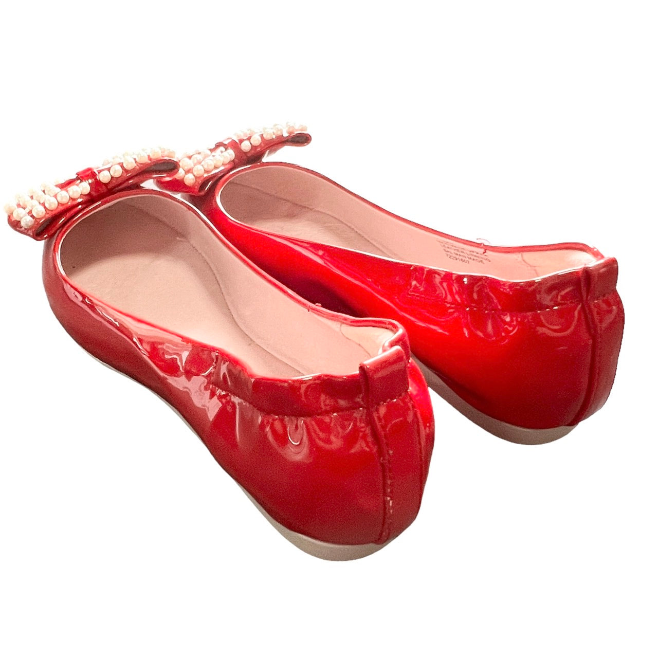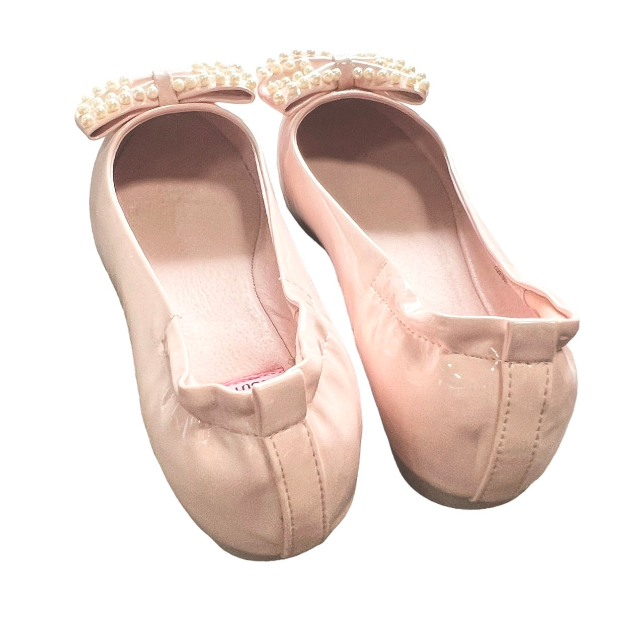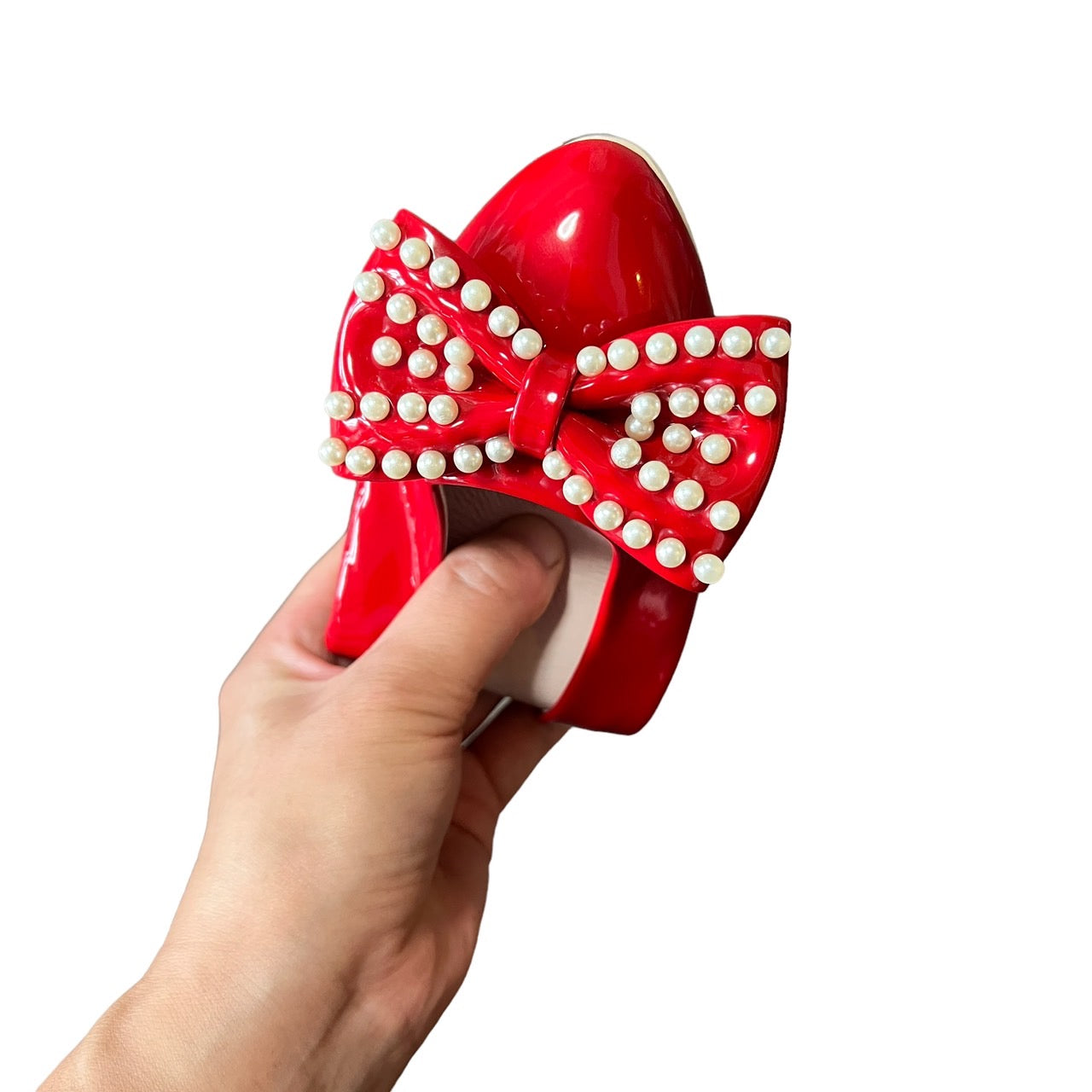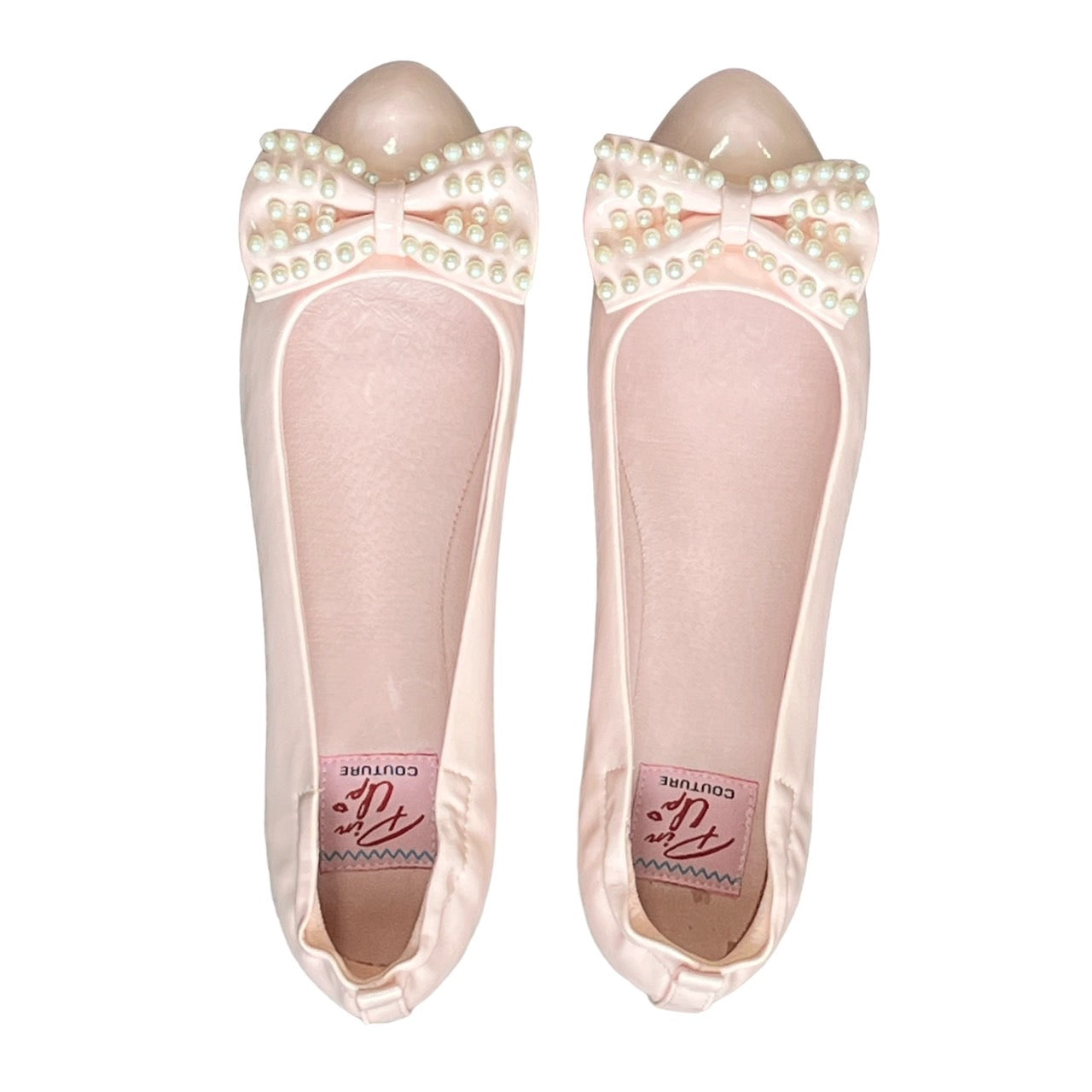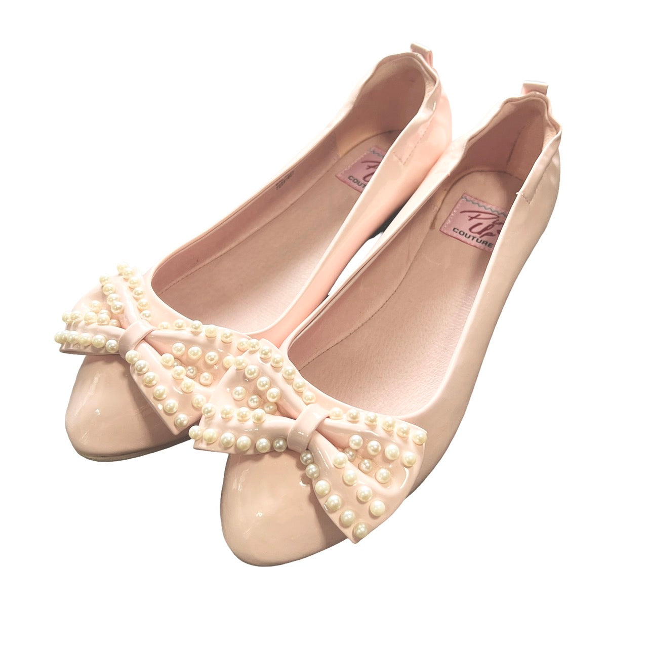 パール風の装飾がついた大き目リボンのアクセントがキュート。