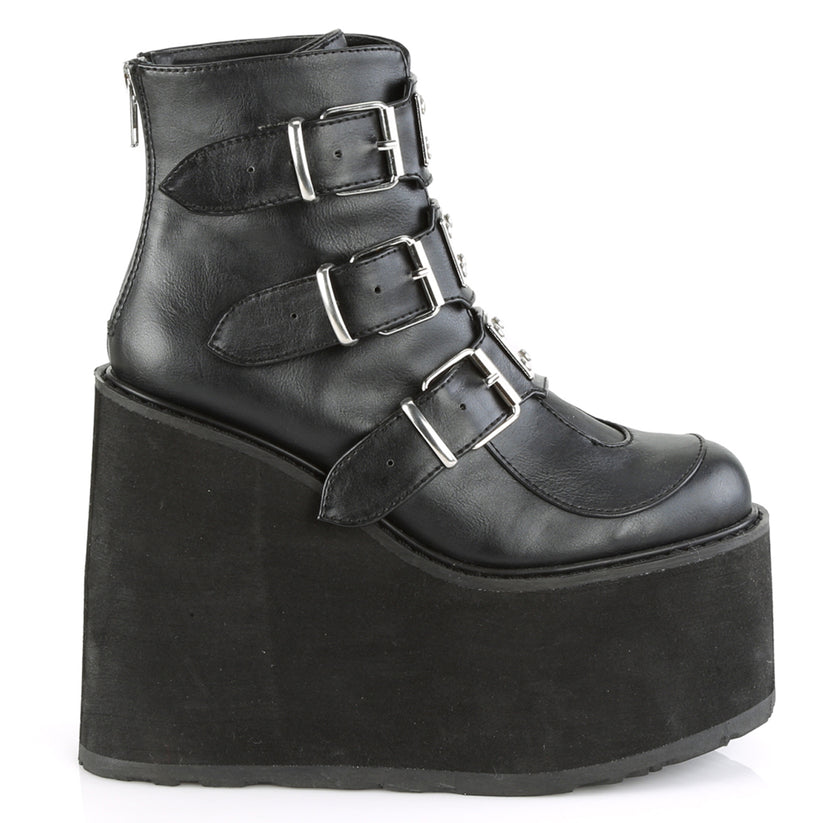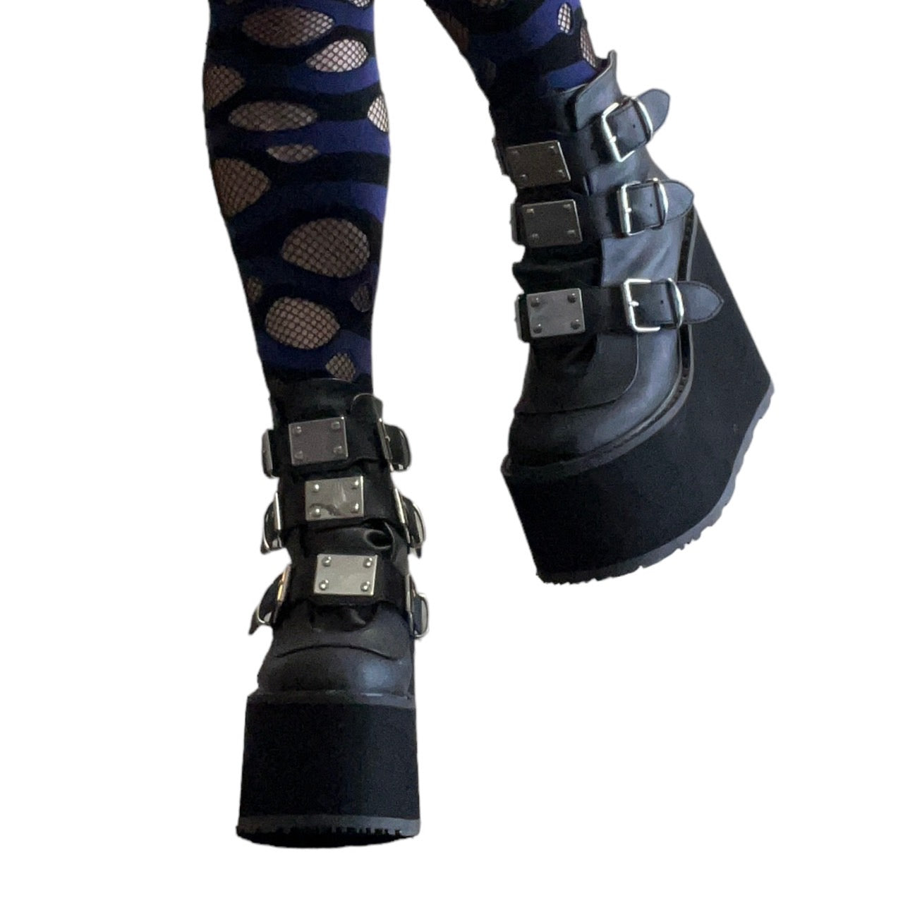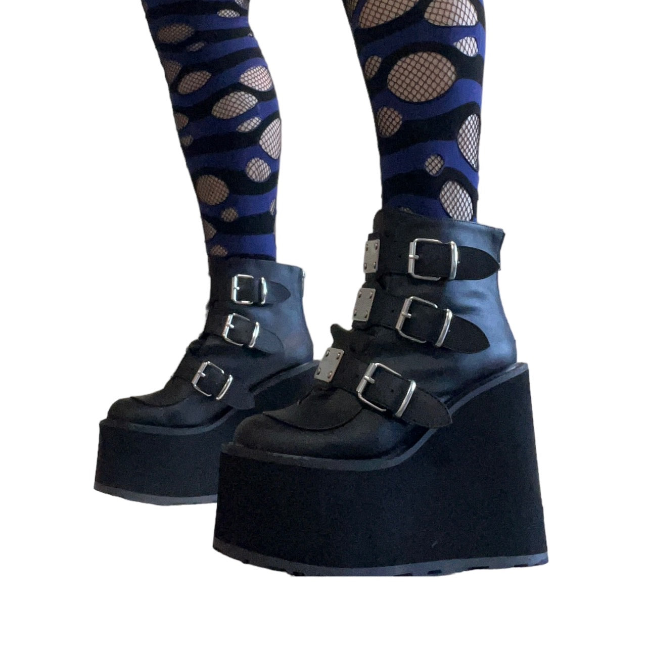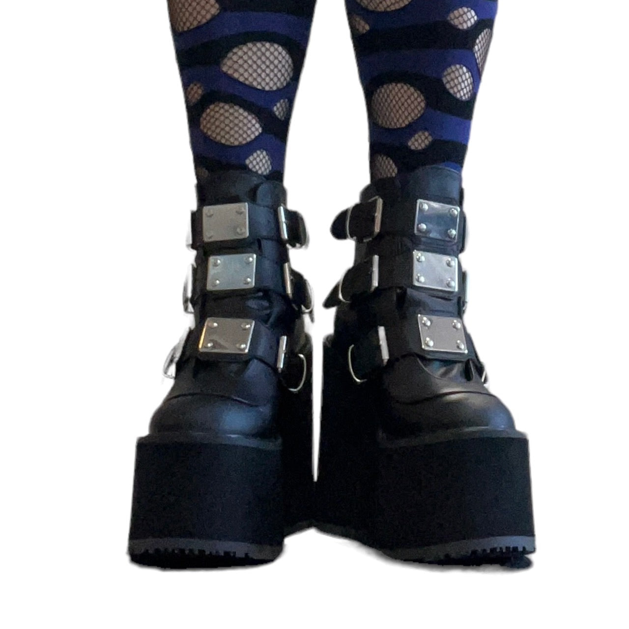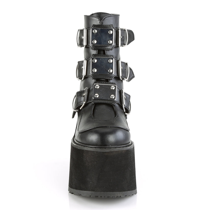 【DEMONIA】3段メタルバックル厚底アンクルブーツ-US7(23.5-24cm)
