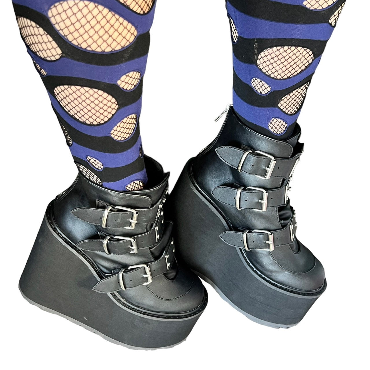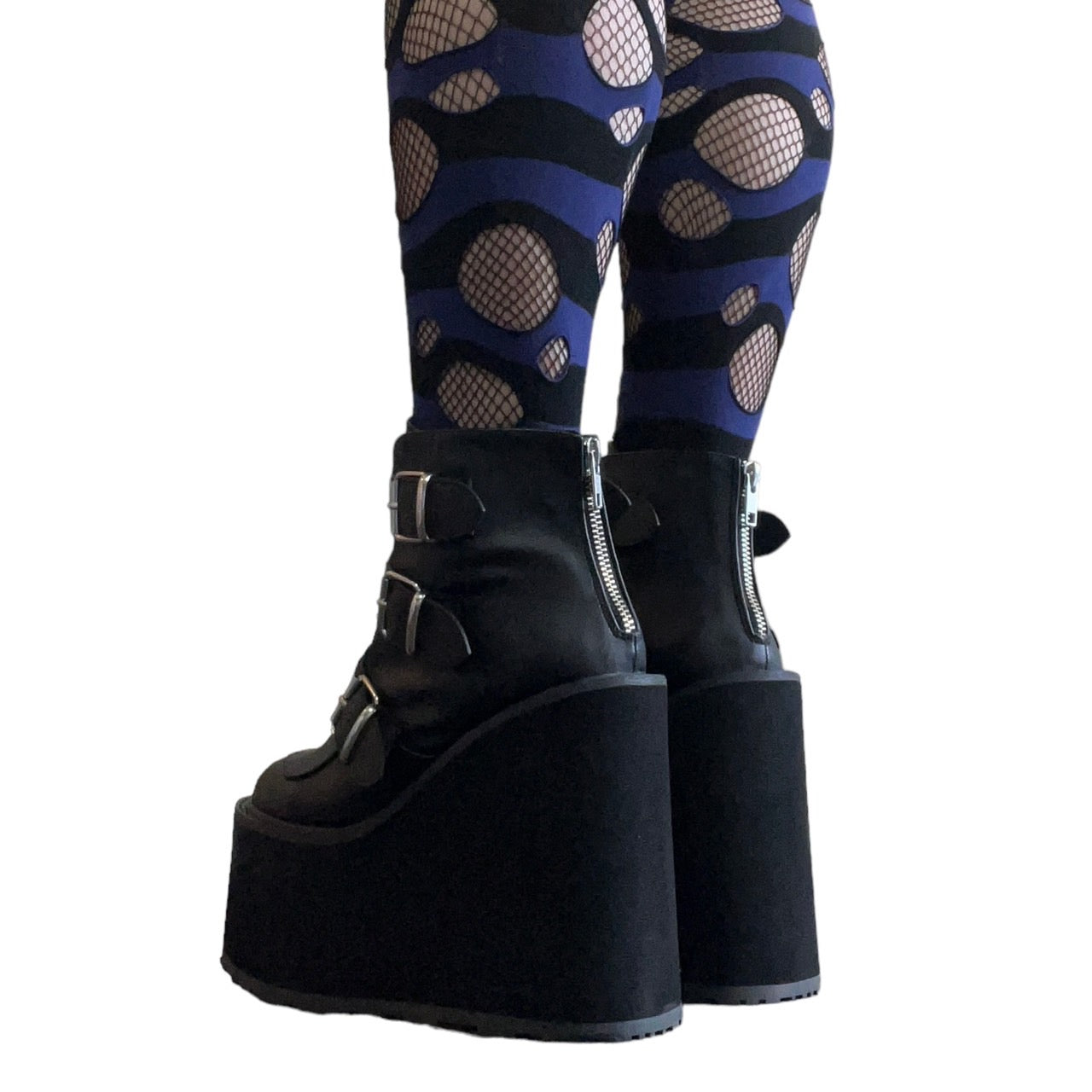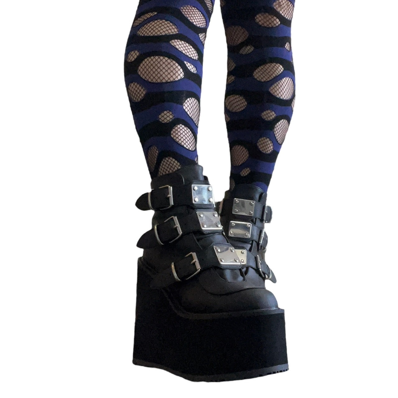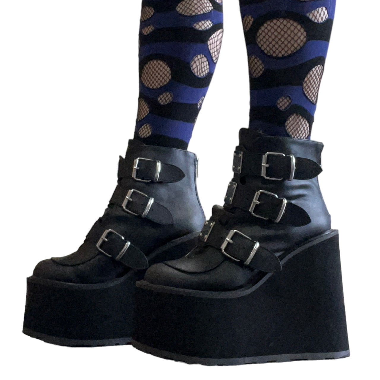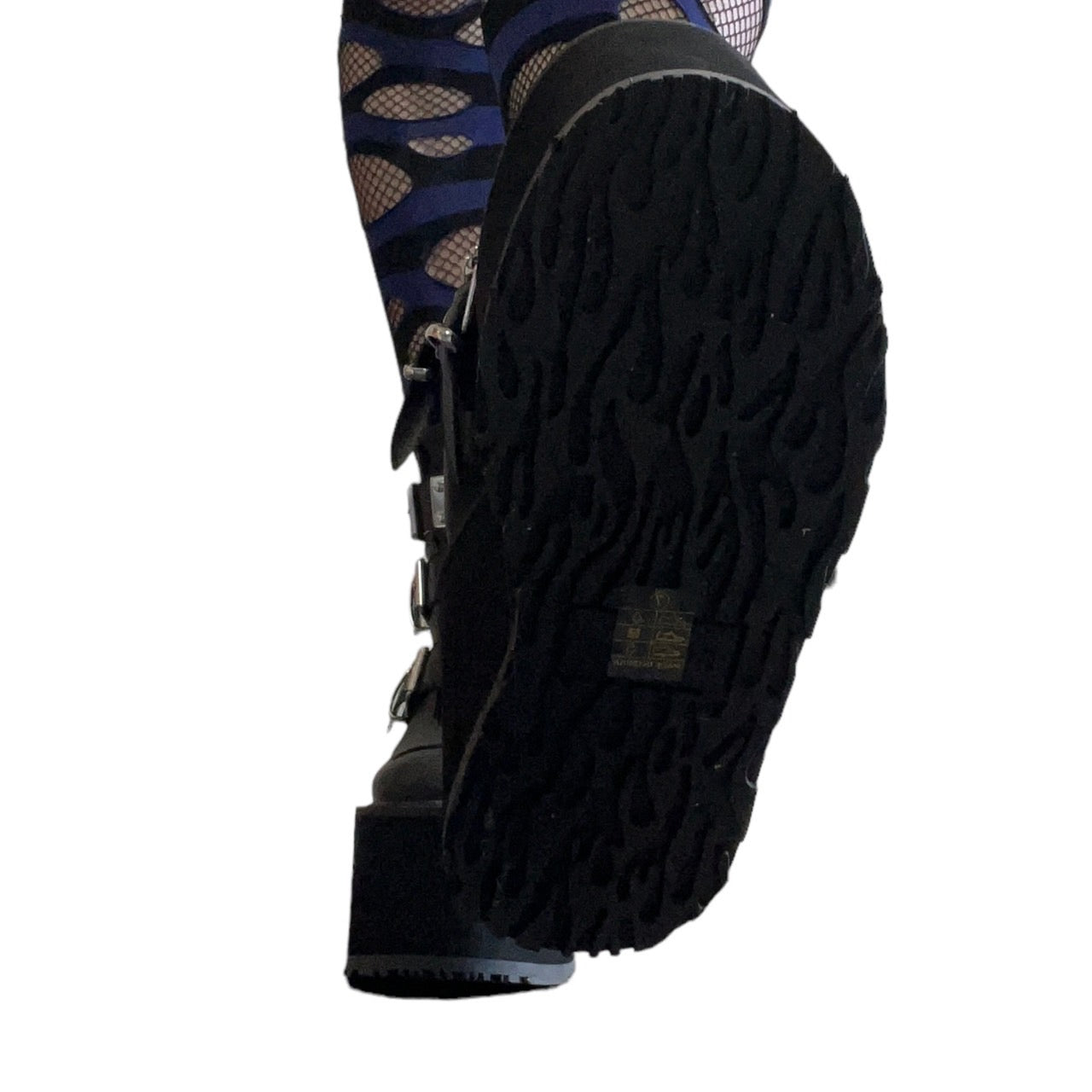 【DEMONIA】3段メタルバックル厚底アンクルブーツ-US7(23.5-24cm)