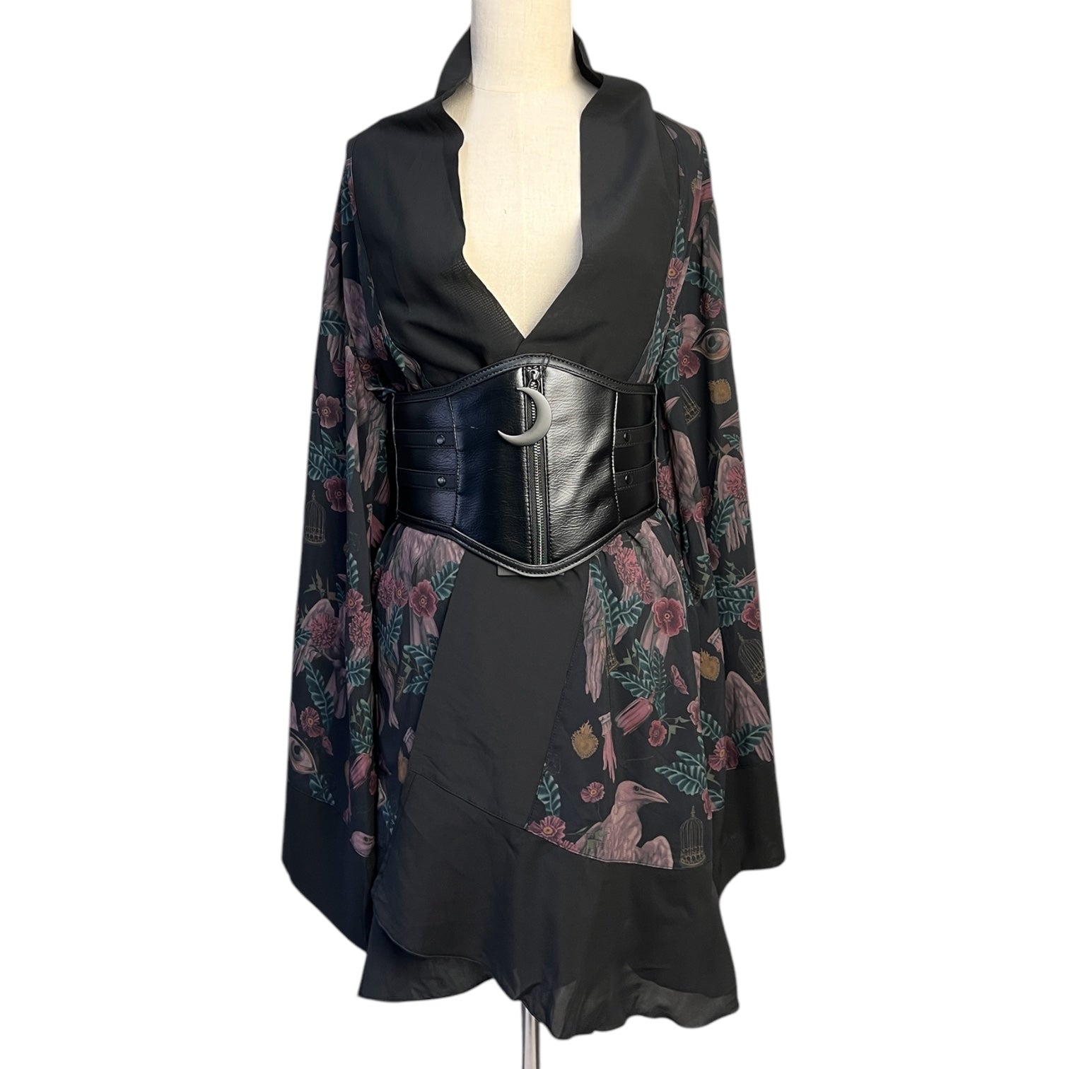コーラックス(カラス)をモチーフにしたコラージュプリントの羽織。