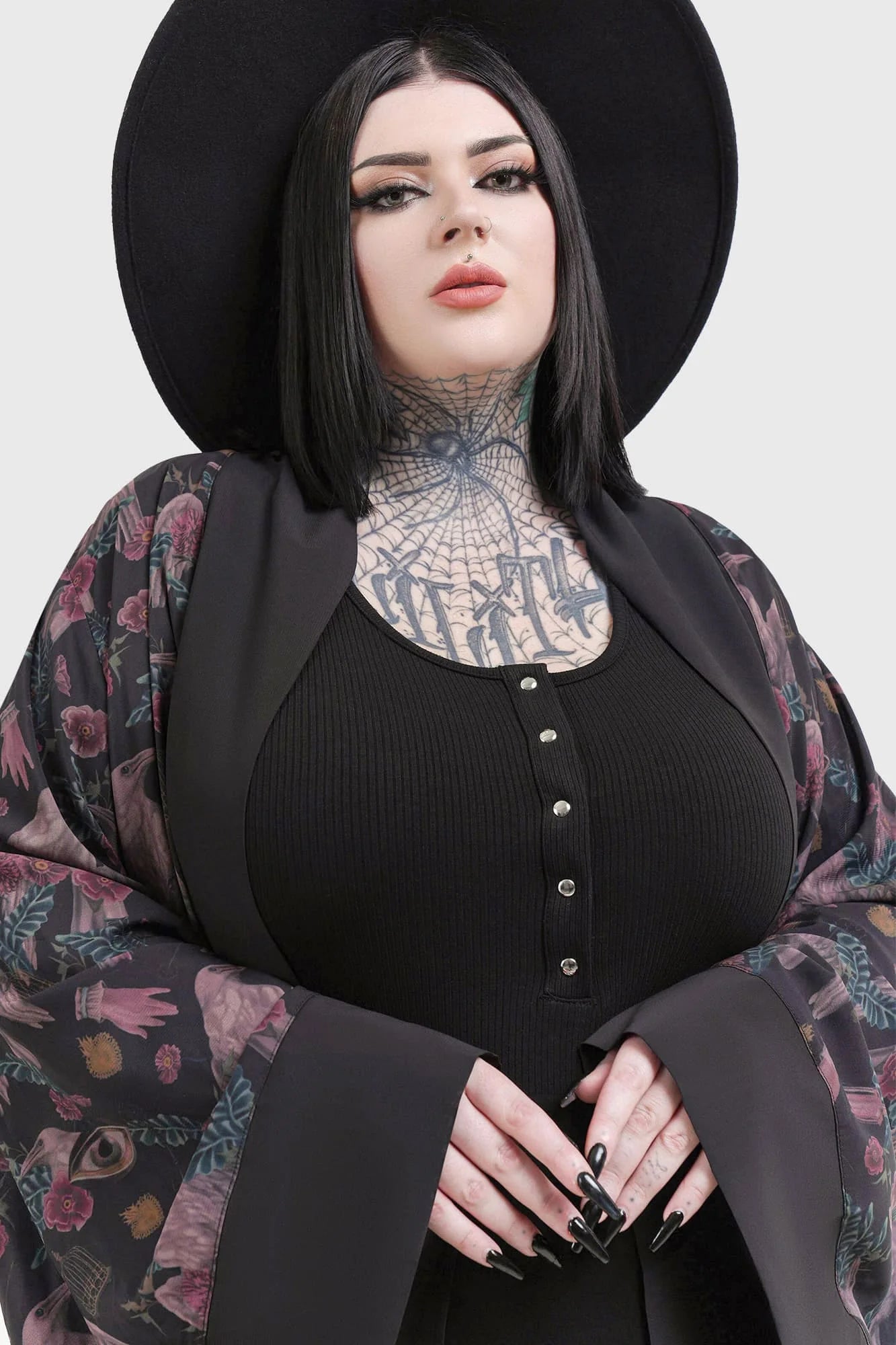 【KILL STAR】CORAX KIMONO*コラージュプリント着物風前開きカーディガン