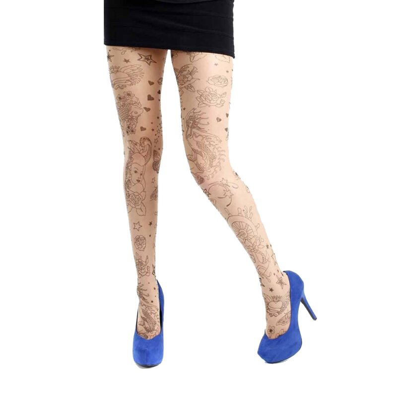 Pamela Mann(パメラマン)のオールドスクールタトゥー柄のシアーヌードタイツ。