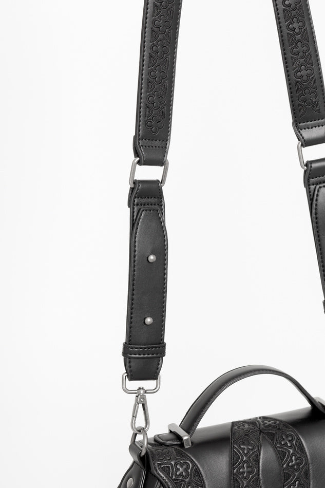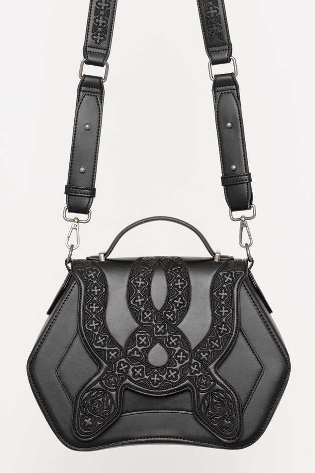 フロントフラップとショルダーストラップには、オリジナルのカテドラルスネーク刺繍。