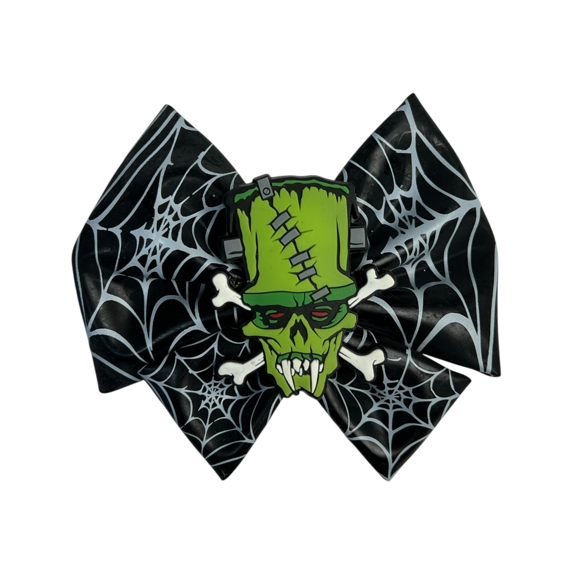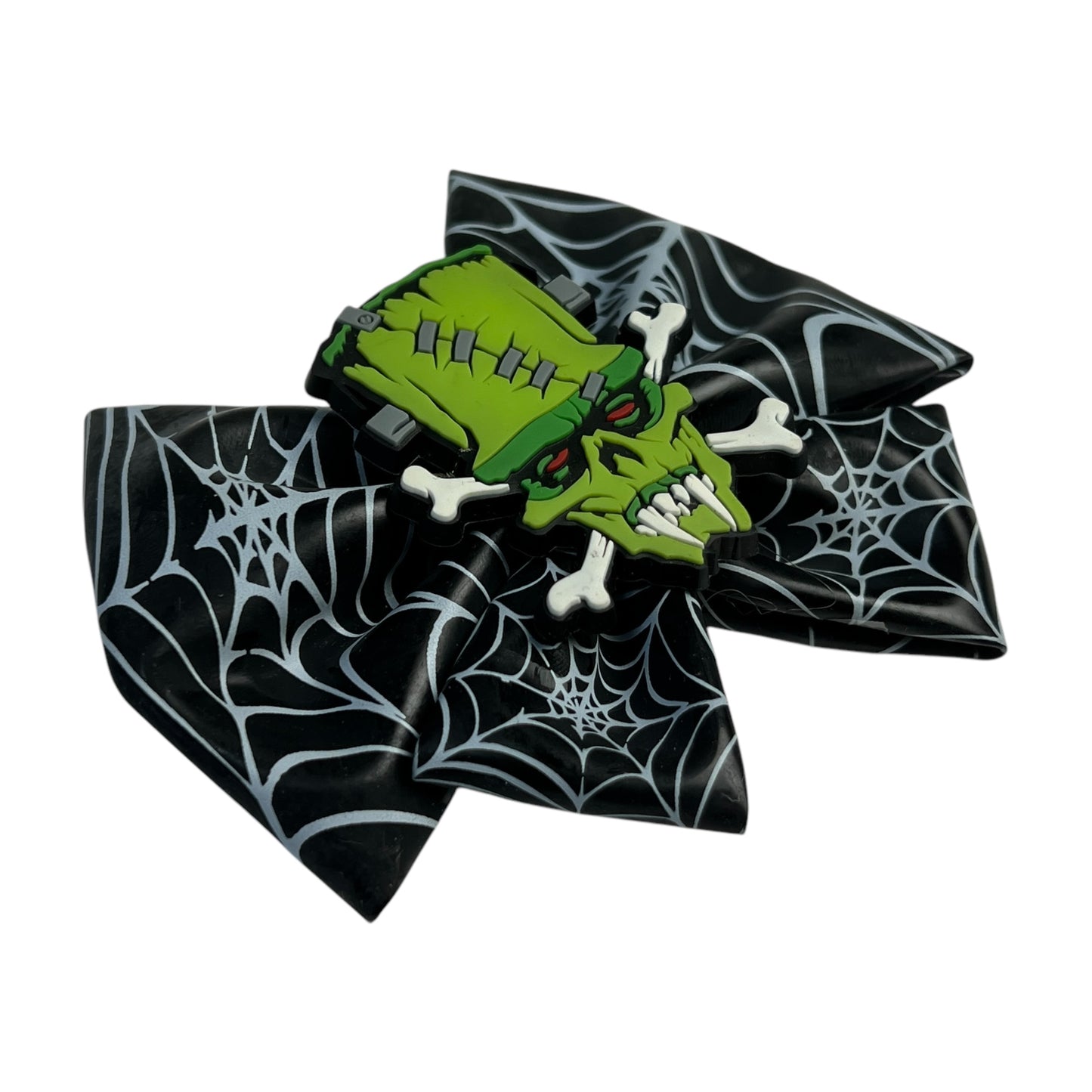ラバー製のフランケンシュタインが付いた蜘蛛の巣リボンのヘアスライド。