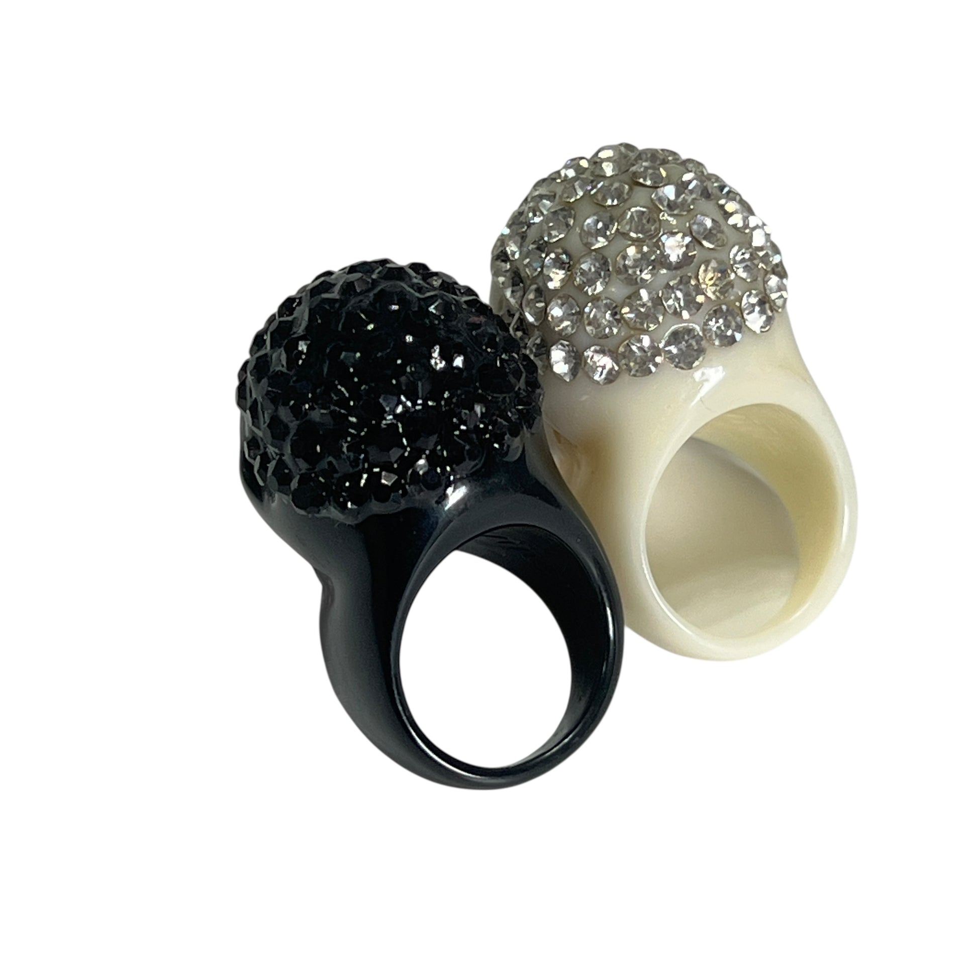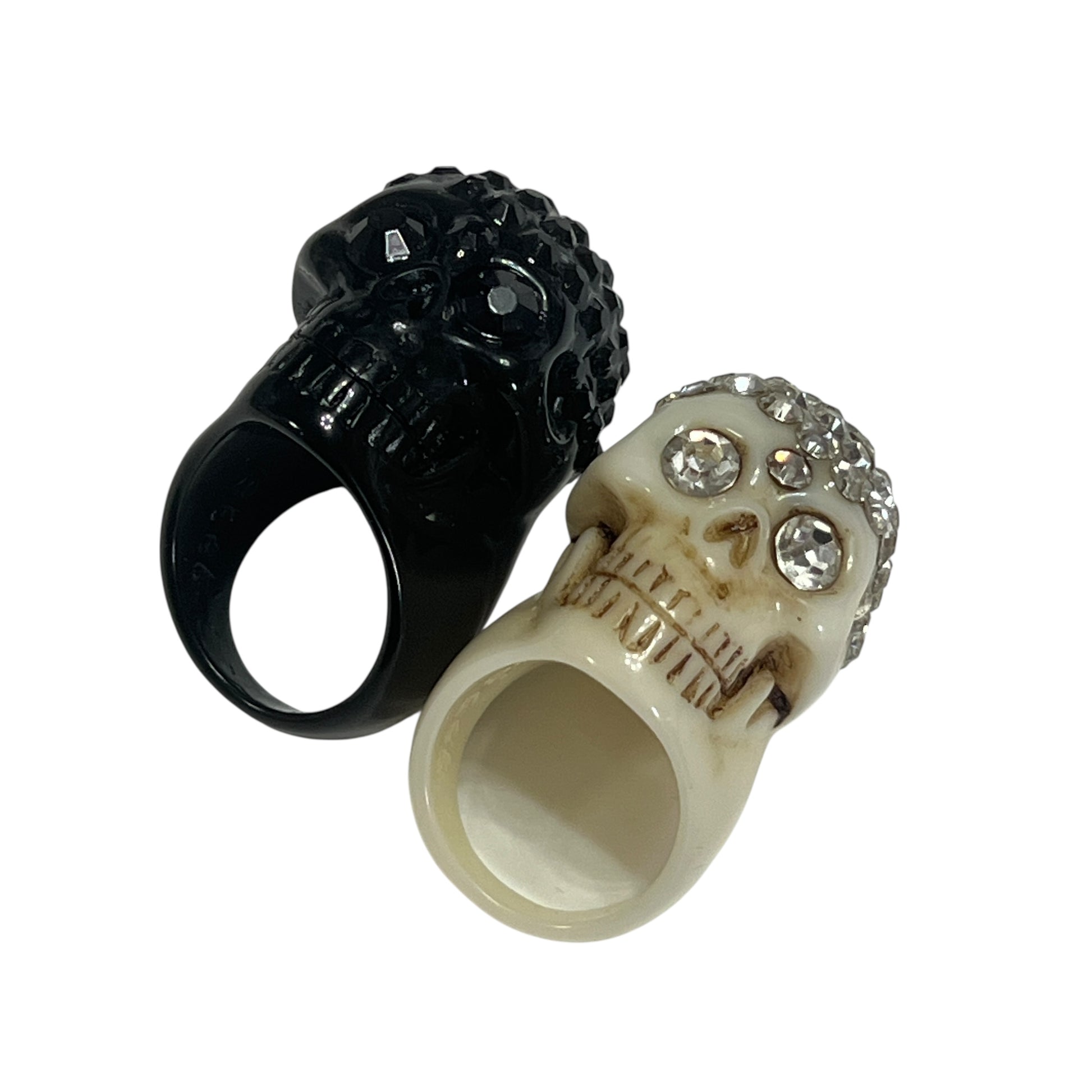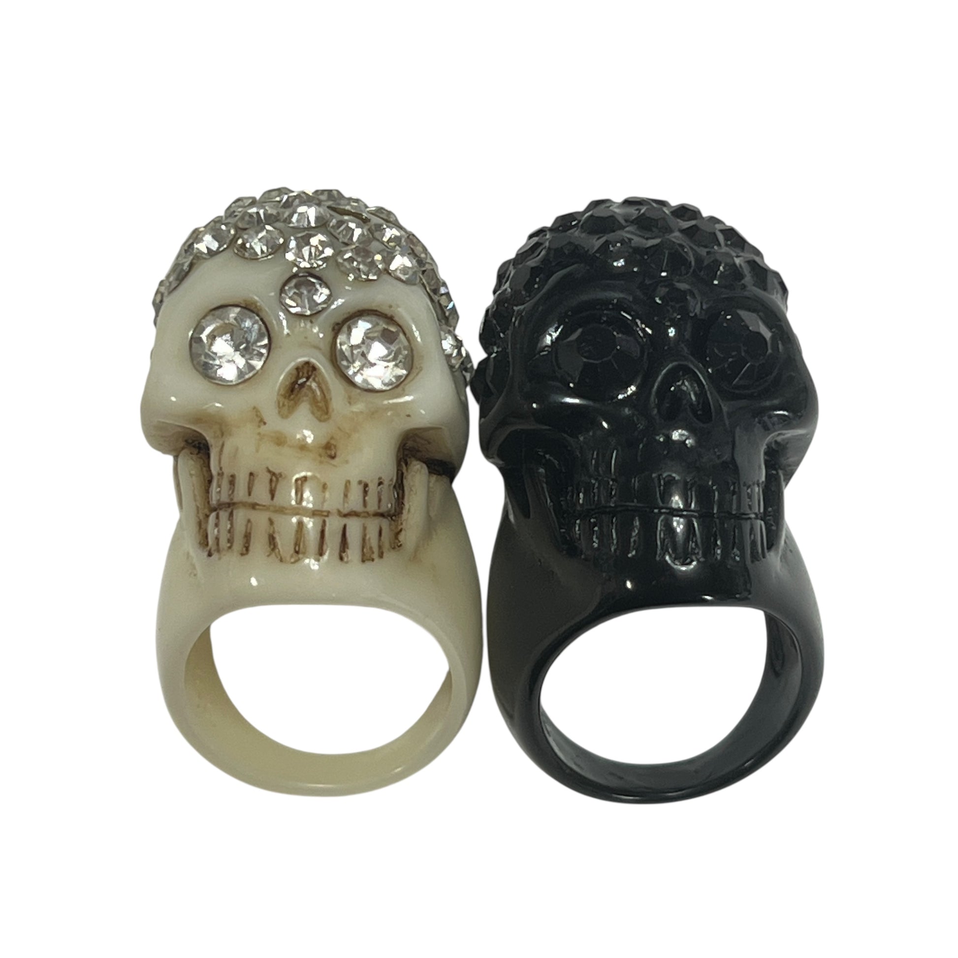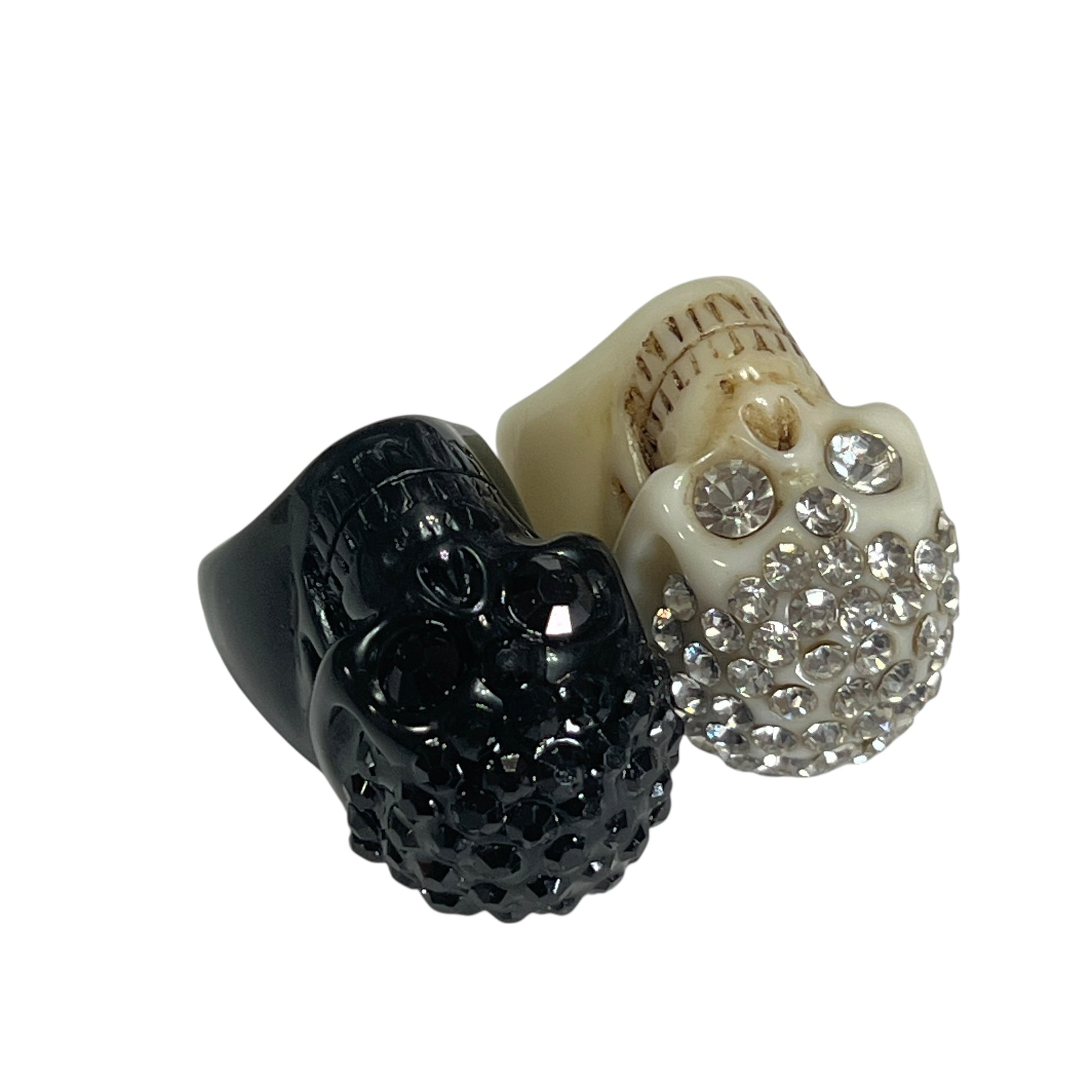 【KREEPSVILLE666】ラインストーン スカルリング 同サイズ白黒セット